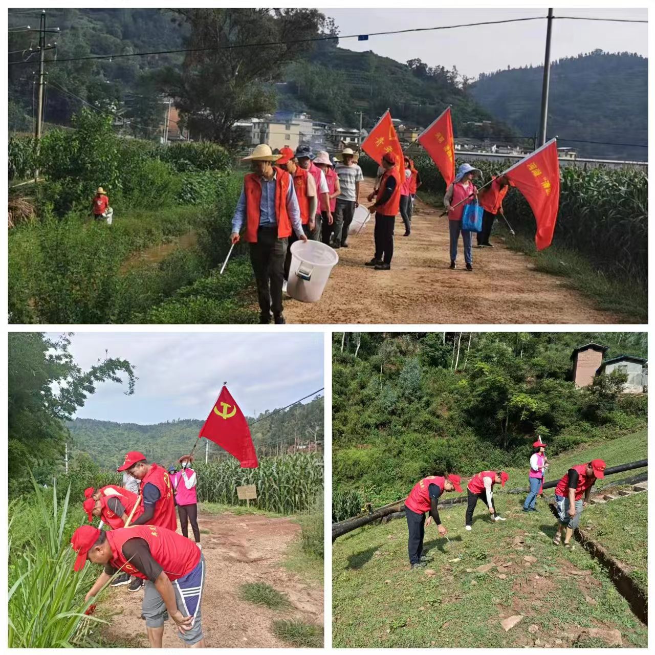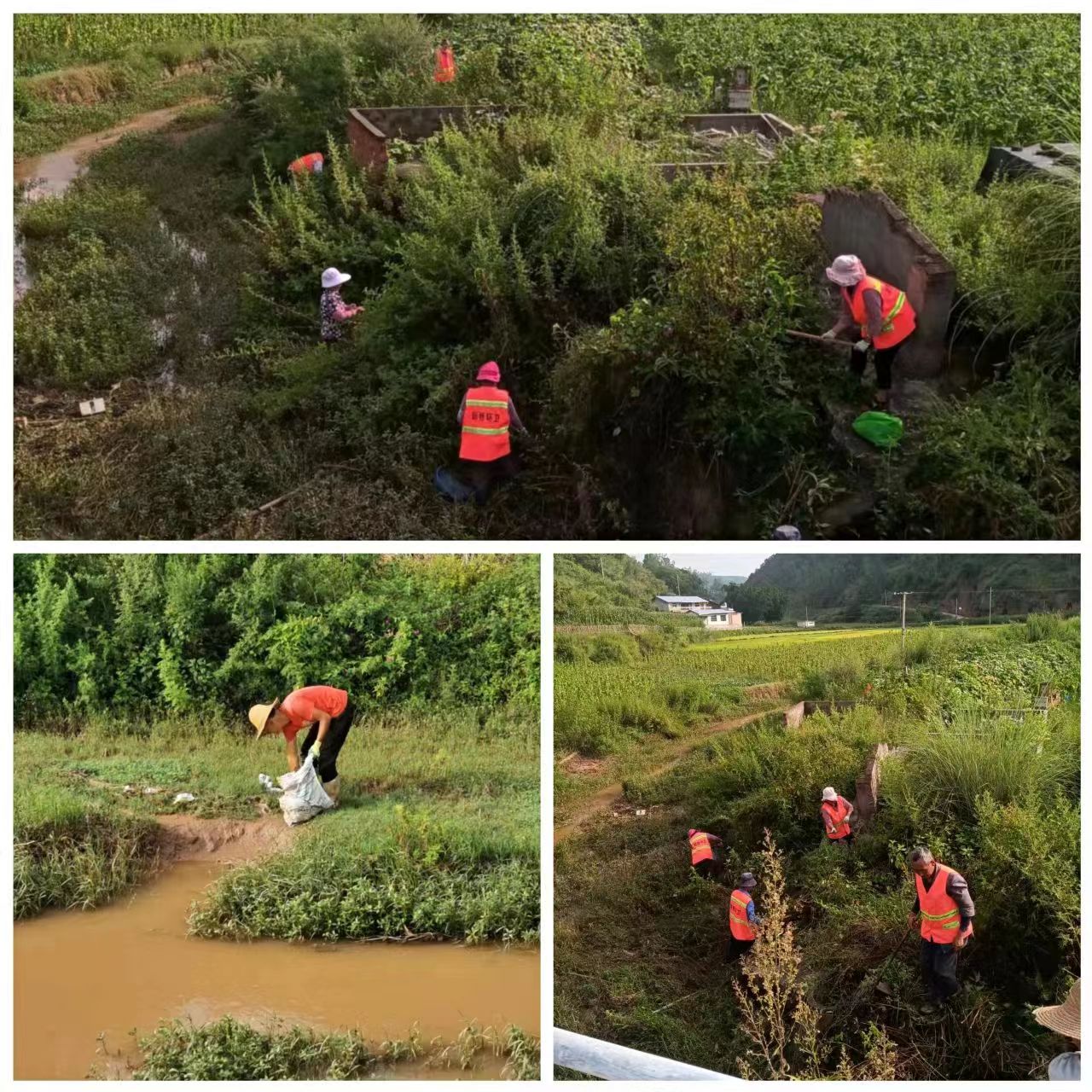河道清理行动中,通过支部引领,党员带头,积极组织干部群众、公益性岗位、河道巡查员开展“地毯式”集中整治,利用钳子、耙子、垃圾袋等工具,对河道沿线上的生活垃圾、废弃物、漂浮物、障碍物等进行全面清理,并对路过的村民做好宣传引导,号召大家共同保护河道环境,杜绝向河道倾倒垃圾、扔杂物等不文明行为。此次清理整治活动以“打捞水面漂浮物、清运沿岸乱堆垃圾”为重点,对沿岸环境卫生进行集中综合整治,真正实现“河面无漂浮、河中无障碍、河岸无垃圾”,确保汛期河道行洪安全。