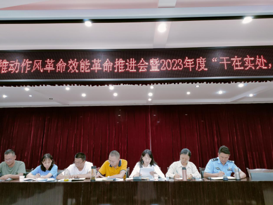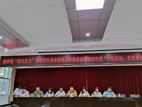 2023年5月31日晚,新桥镇召开“四向发力”推动作风革命效能革命推进会暨2023年度“干在实处、走在前列”大比拼目标陈述会议,镇党政班子成员、15个村党总支书记、全体干部职工共80余人在镇级主会场参加会议,其余村委会坐班干部在村级分会场参加会议。