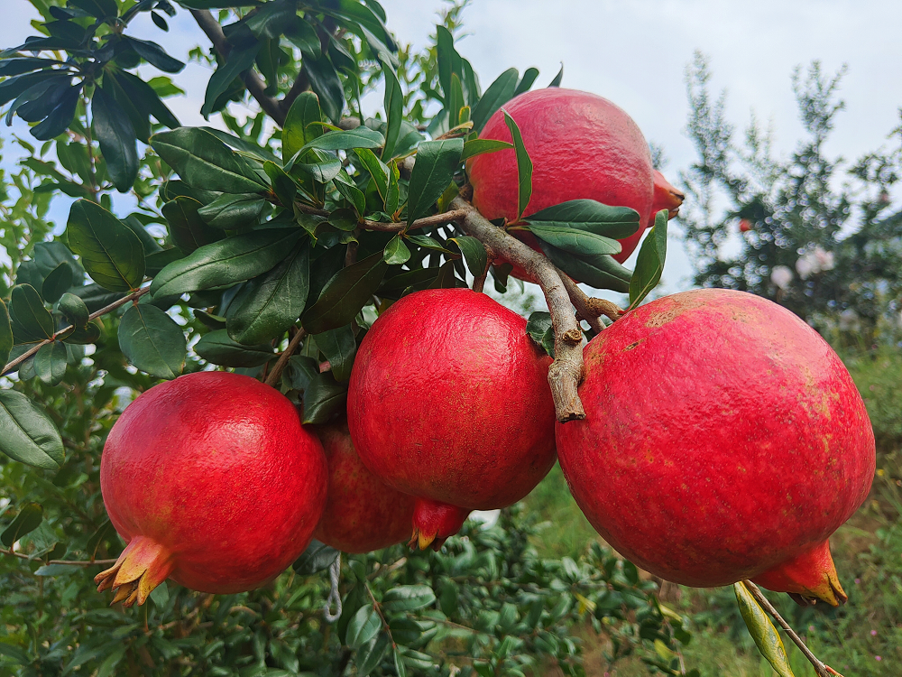 2021年,基地引进专业管理人员,结合基地实际情况,通过改进抽水泵站降低电费、整形拉枝变风景树为高品质果树、套袋提升果实品相、在原有突尼斯品种上嫁接改良品种、引进玛丽斯和慕乐新品种等有效措施对石榴基地进行提升改造,加之气候、土壤等天然优势,石榴品质实现跨越式提升,得到市场广泛认可。
