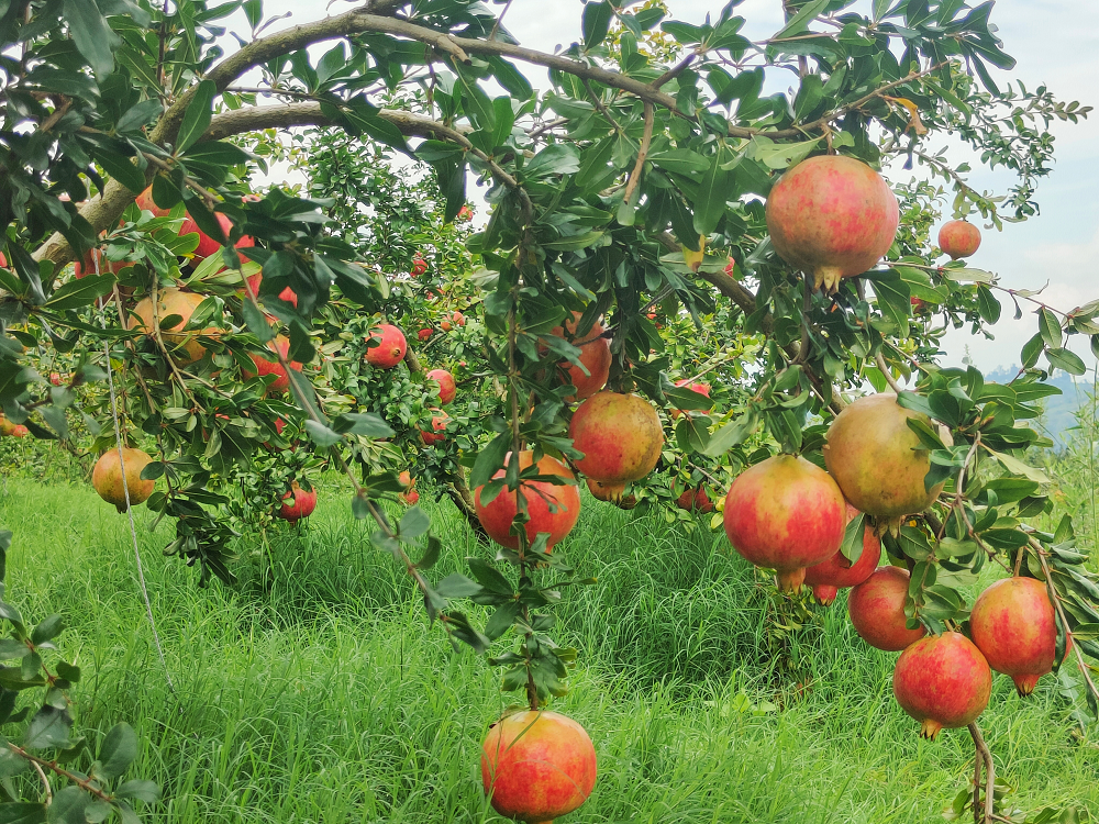 软籽石榴挂满枝头(2023年9月7日摄)