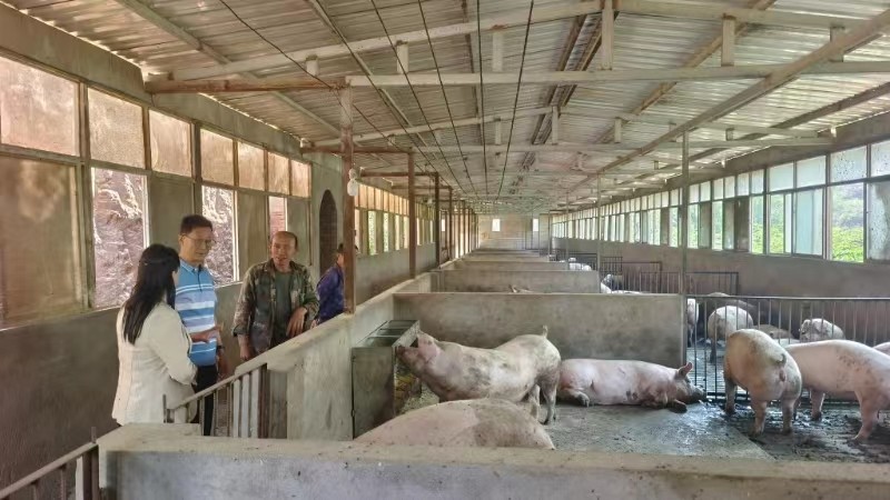 图为:牟定县残联理事长普晓东到2024年省级残疾人就业创业示范户李军明的养殖场调研残疾人就业工作