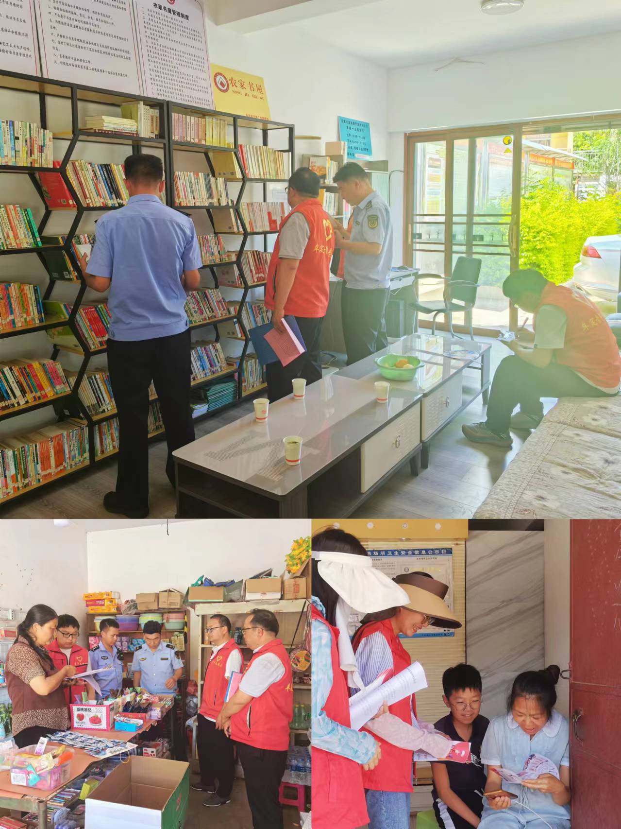 与此同时,江坡镇联合镇市管所、派出所、党建办、民宗办、文化站等工作力量,对高平中小学周边超市、商铺等开展文化市场综合执法检查行动。工作人员对经营主体出版物、食品安全、用火用电、消火栓、灭火器和消防通道等进行仔细排查检查。志愿者们向经营者和来往群众宣传普及“全民阅读”、食品安全、“文明上网”和出版物市场等相关知识和法律法规,引导各经营主体要依法依规诚信经营,筑牢食品、消防等安全防线,呼吁经营单位提高认识,杜绝有害信息和垃圾文化进入市场,切实维护校园周边良好秩序;倡议广大家长在暑假期间引导孩子多读书,读好书,远离电子产品,培养良好阅读习惯。此次联合执法检查行动共检查超市2家,商铺13家。