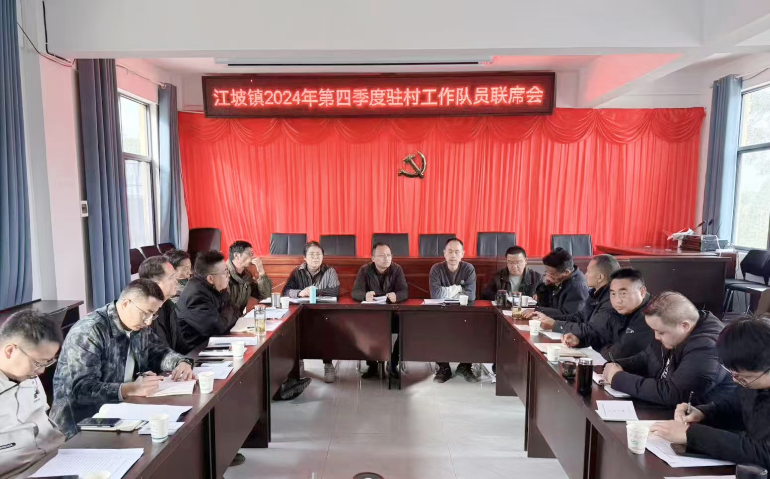 为扎实推进巩固拓展脱贫攻坚成果推进乡村振兴工作,进一步提升全镇驻村工作队履职能力,2024年11月28日,江坡镇在福龙村委会召开2024年第四季度驻村工作队联席会议,镇级相关领导及16名驻村工作第一书记、驻村工作队员、福龙村“两委”班子成员共23人参加会议。