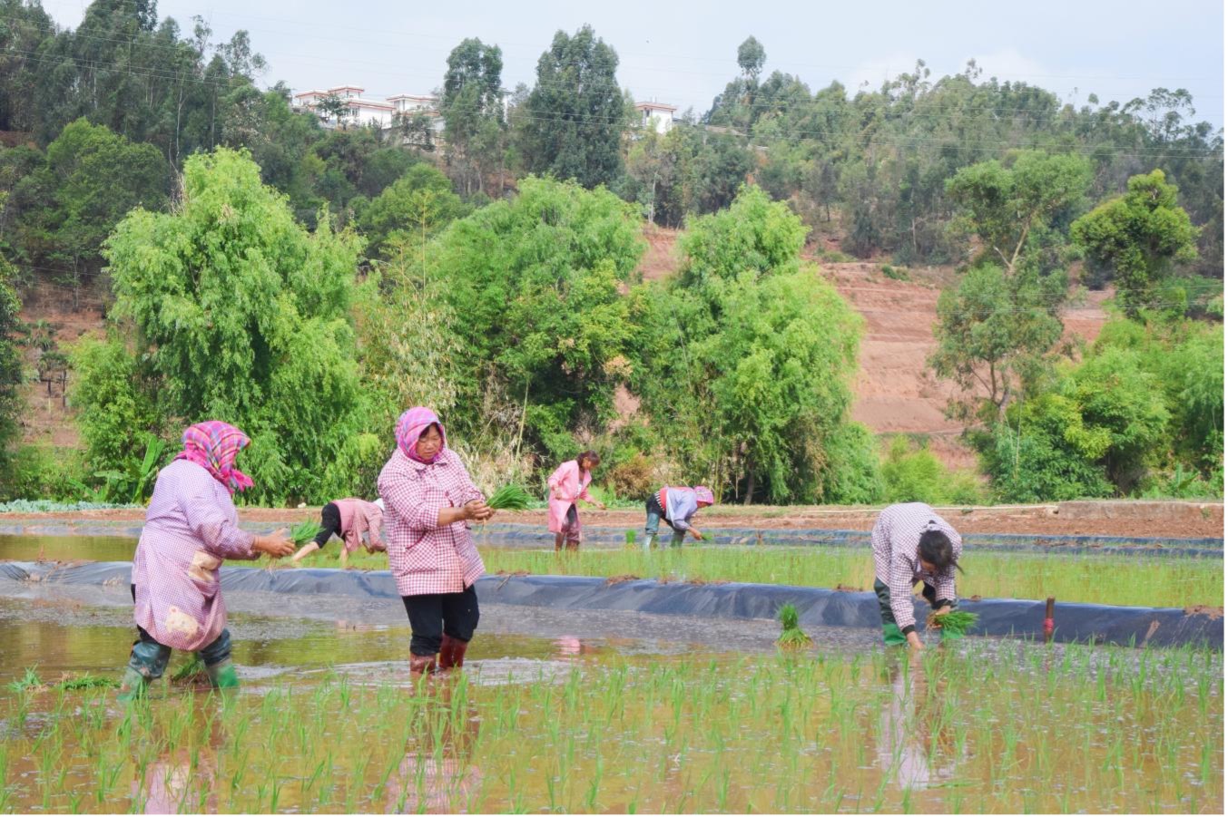 “手把青秧插满田,低头便见水中天”,眼下正是水稻插秧的大好季节,云南省楚雄州牟定县安乐乡抢抓雨水充足时机组织农户全力进行水稻种植,生机勃勃的农耕图景铺陈开来。
