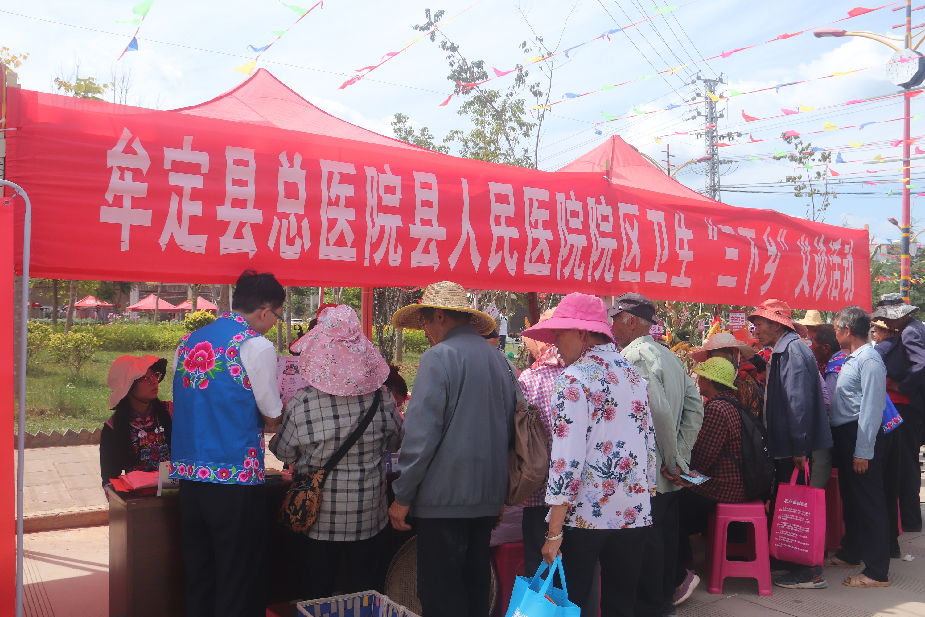 县级责任单位进行政策宣传、志愿服务,向过往群众发放文化科技卫生用品、农用物资、宣传资料等,切实将优质资源送到村民身边,不断提升村民的科技素养、文化修养及健康水平。