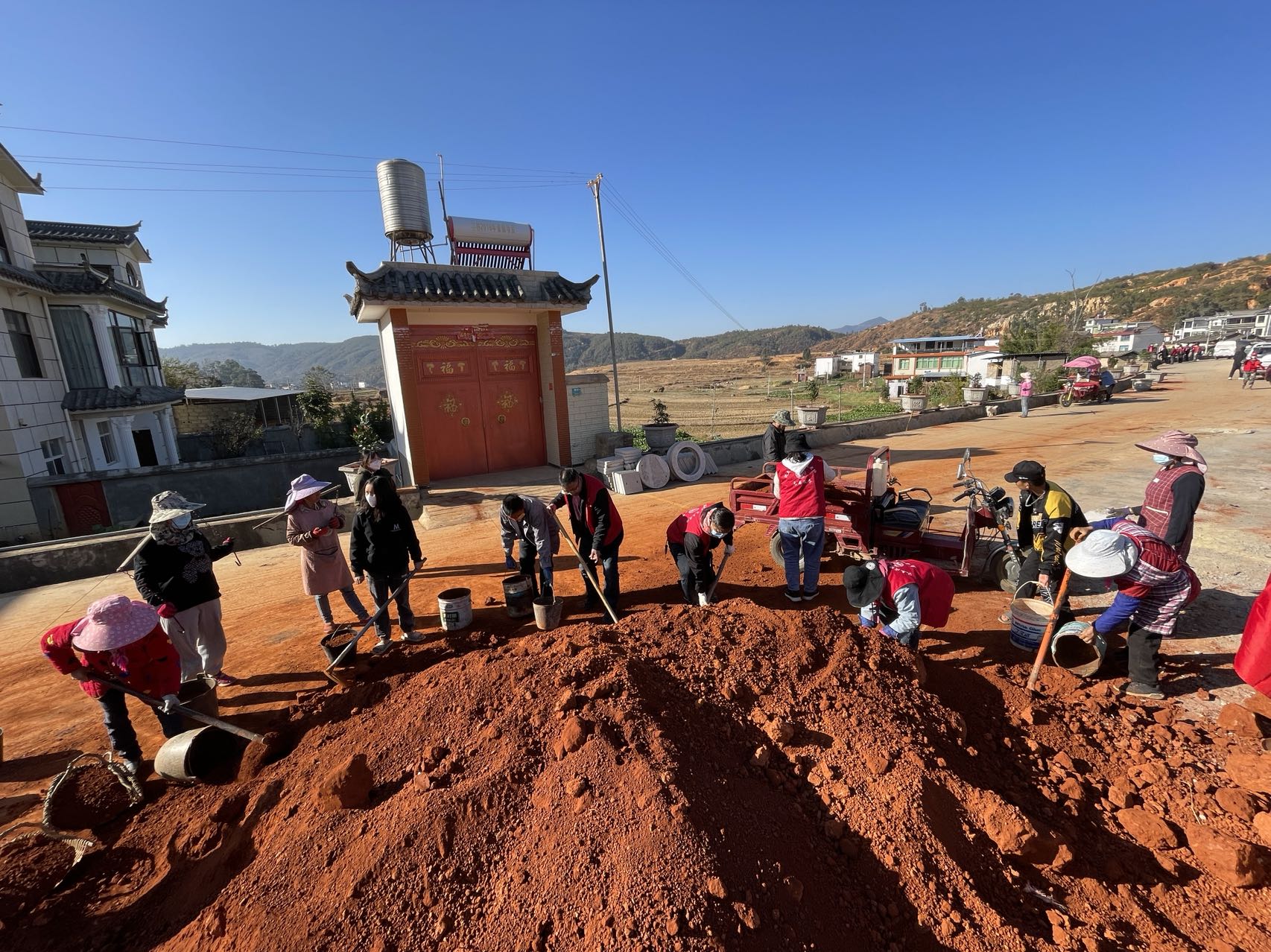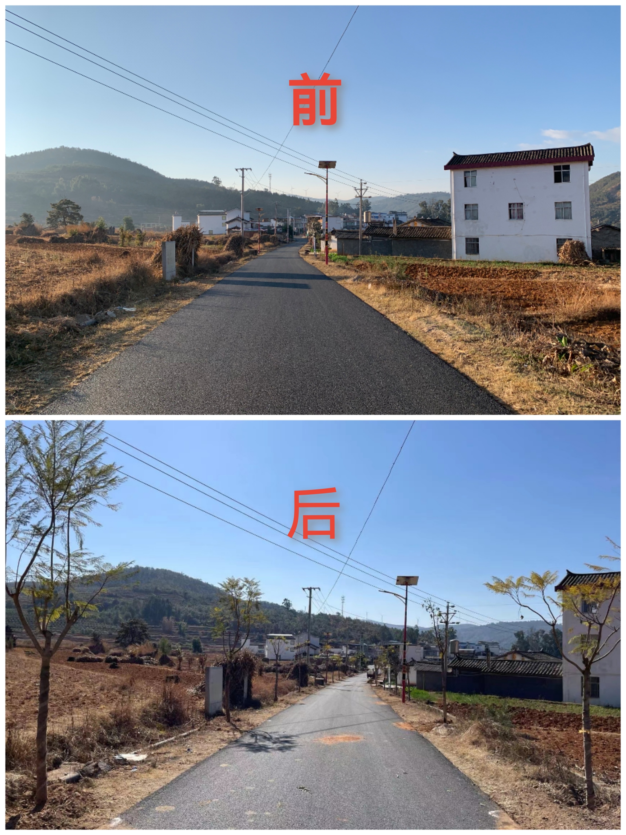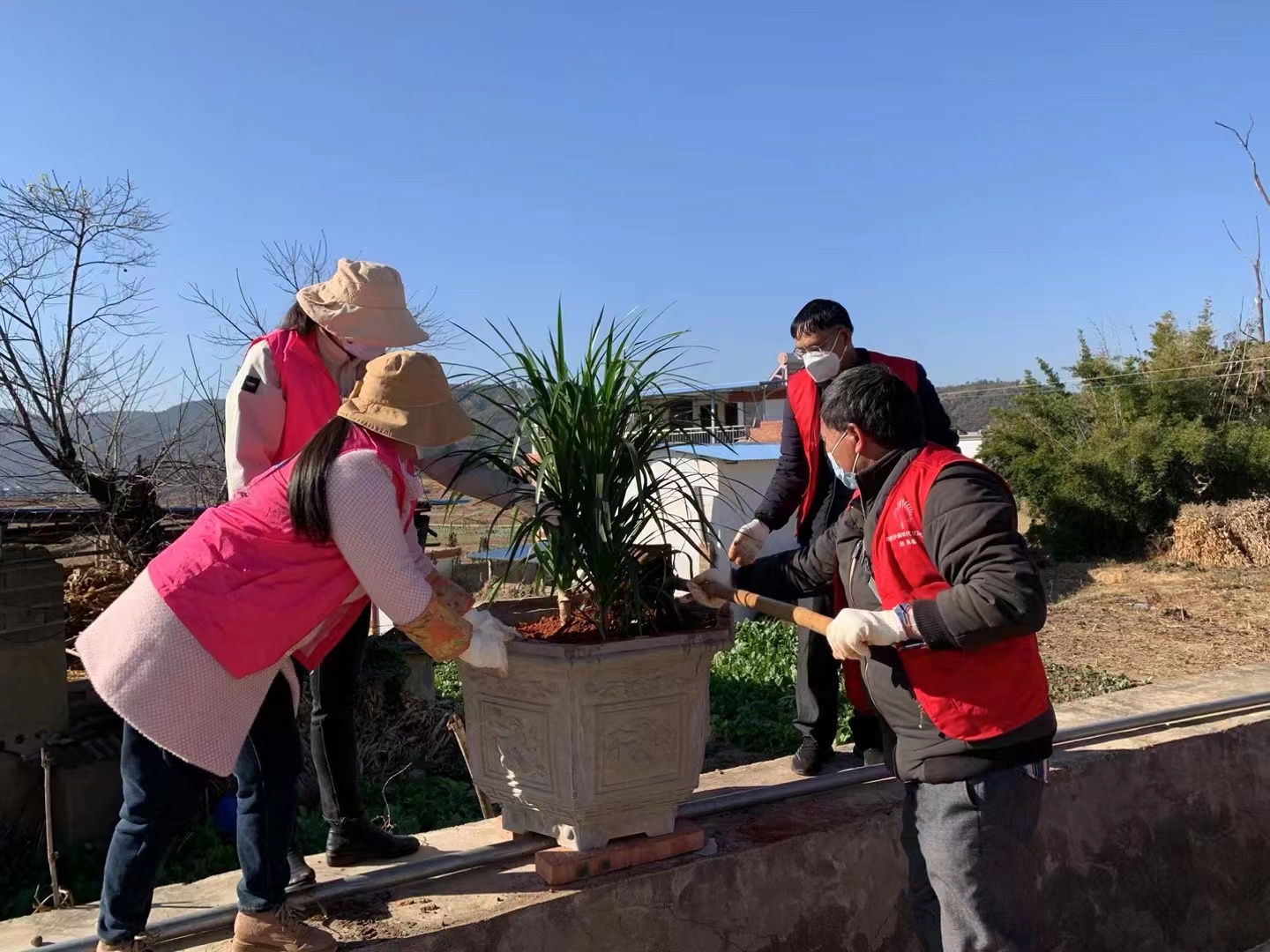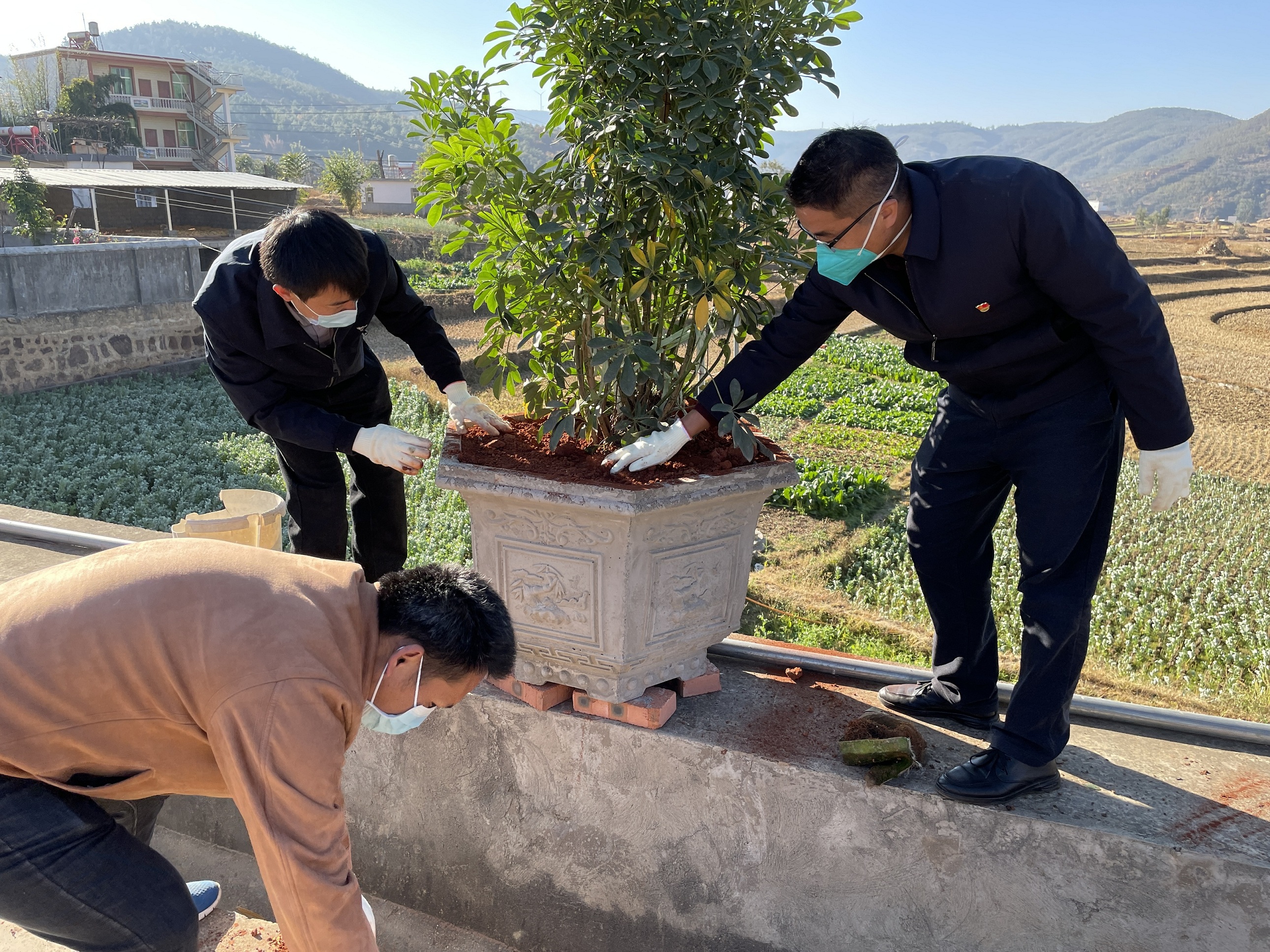 通过大家齐心协力劳作,本次活动在老纳上村栽种铁树、杜鹃、茶花、沙漠玫瑰等110余盆,在进村公路沿线栽种蓝花楹、鸡冠刺桐64株。