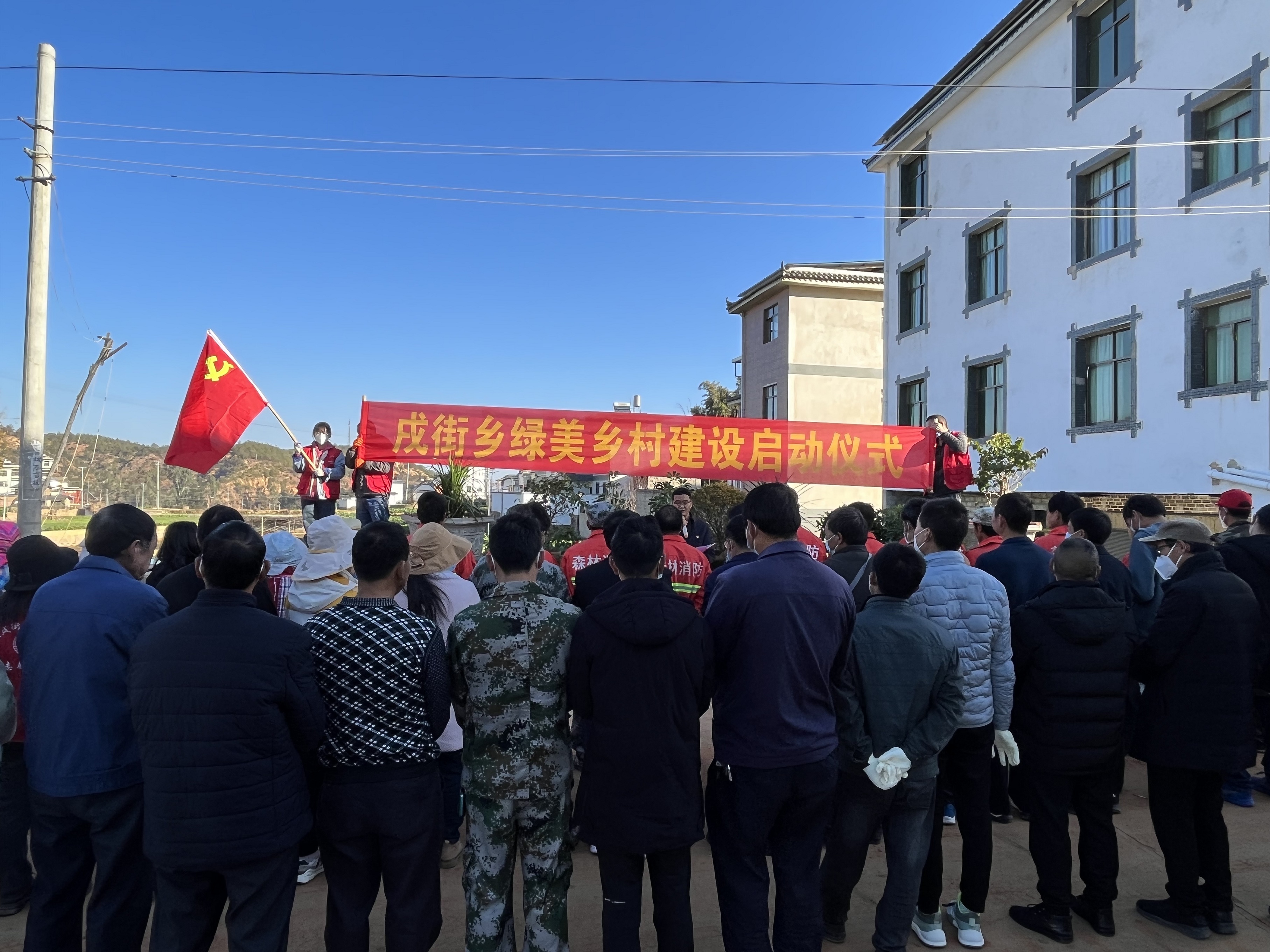 为深入贯彻习近平生态文明思想和习近平总书记考察云南重要讲话精神,落实省、州、县党委政府关于城乡绿化美化三年行动决策部署,发动党员、群众参与到绿美乡村建设中来,2023年1月7日上午,戌街乡在老纳上村举行戌街乡绿美乡村建设启动仪式。乡党政班子成员、乡级各站所负责人、8个村党总支书记、村委会主任、土地专管员、乡级专业扑火队和老纳上村党员、群众,共计90余人参加活动。