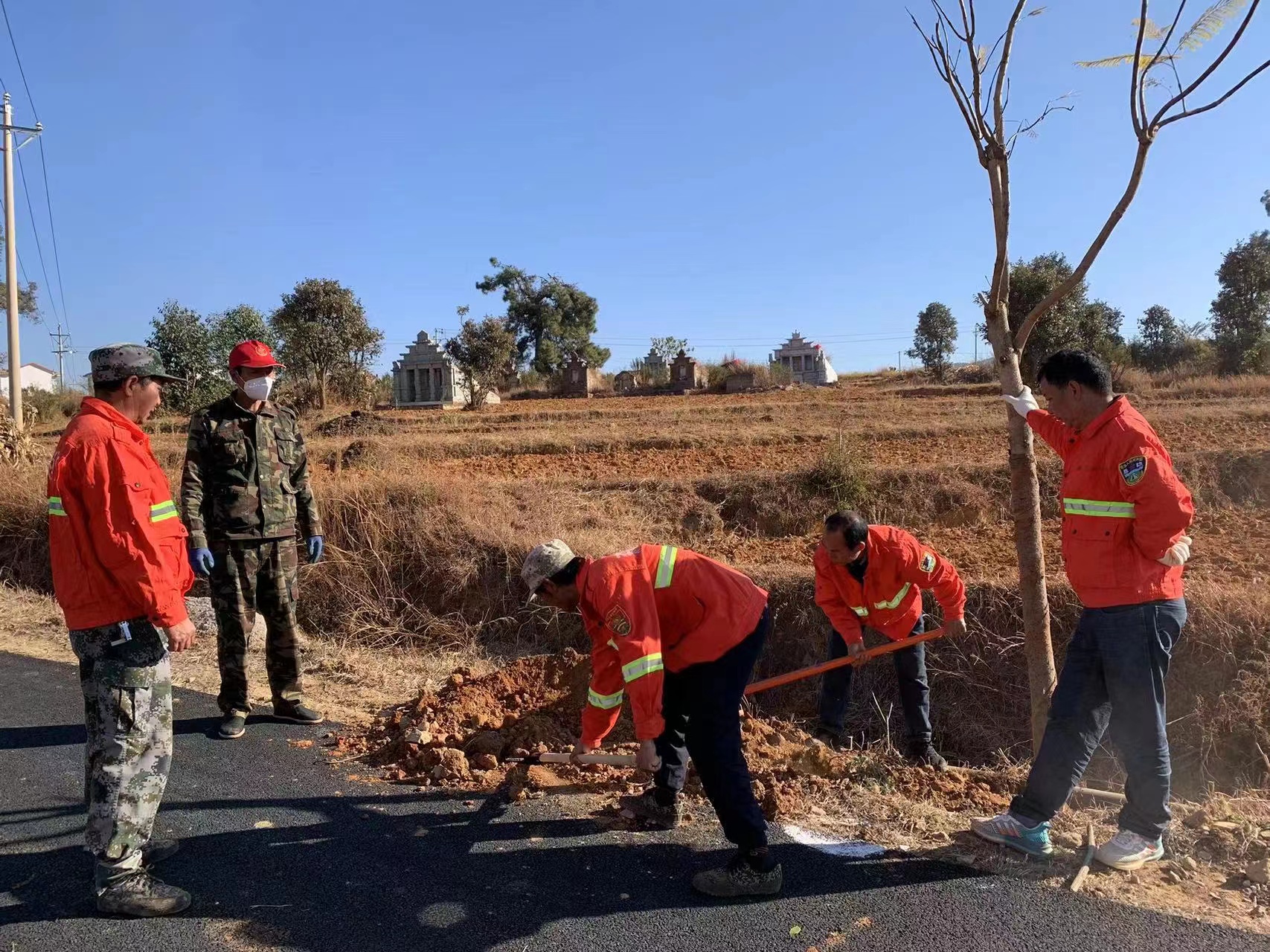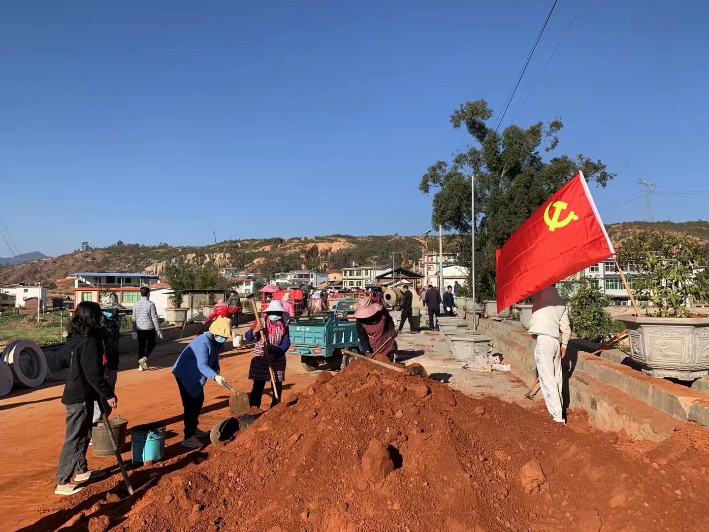 启动仪式结束后,全体人员踊跃参与到植树活动中,植树现场鲜红的党旗迎风飘扬,参与活动的干部、党员、群众卷袖动手,有的挥锹铲土、有的扛树运苗、有的提水浇灌,整个过程有条不紊,各个环节衔接有序,劳动现场配合默契,呈现一片繁忙有序、热火朝天的劳动景象,以实际行动带领全乡下掀起乡村绿化美化高潮,为“果蔬之乡、沃土戌街”更添一抹绿。