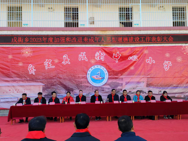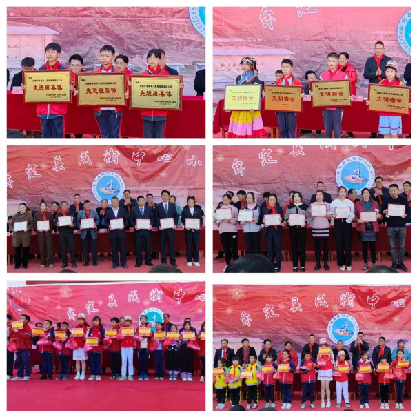 会上,戌街乡党委副书记赵荣同志宣读《中共戌街乡委员会戌街乡人民政府关于表彰2023年度加强和改进未成年人思想道德建设工作先进集体和先进个人的决定》,主席台就座的领导为3个先进单位、3个先进班级、4个文明宿舍、8名优秀班主任、8名先进工作者、8名优秀家长、40名优秀学生颁奖。