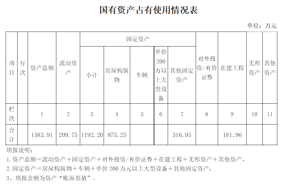 截至2021年12月31日,牟定县凤屯中心小学资产总额1583.91万元。其中,流动资产209.75万元,固定资产1192.20万元,对外投资及有价证券0万元,在建工程181.96万元,无形资产0万元,其他资产0万元(具体内容详见附表)。与上年相比,本年资产总额减少4.23万元,其中固定资产减少71.03万元。处置房屋建筑物0平方米,账面原值0万元;处置车辆0辆,账面原值0万元;报废报损资产0项,账面原值0万元,实现资产处置收入0万元;出租房屋0平方米,账面原值0万元,实现资产使用收入0万元。