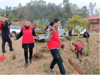 为全面落实好全省2023年城乡绿化美化现场推进会议和全县“一人十树、百村万树”推进会议精神,牟定妇计中心全体干部职工自愿捐款3800余元,购买树苗350株(100株石榴树苗、150株橘子树苗、100株苹果树苗)。于2024年1月25日,组织干部职工12人深入扶贫联系点凤屯镇龙丰村委会开展“一人十树、百村万树”行动月活动。