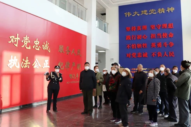 随后,离退休老干部参观业务技术用房及警营文化建设,开展拍摄“民警与警旗合影”纪念照。