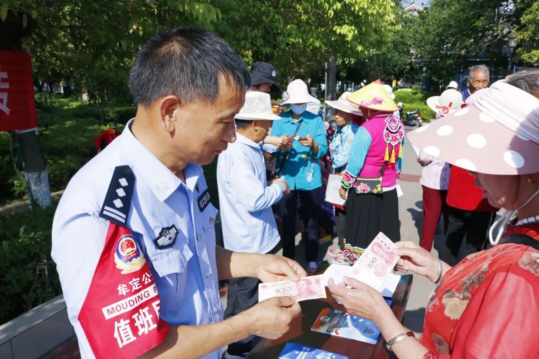 在全国第15个“5.15”打击和防范经济犯罪宣传日,恰逢牟定县传统节“三月会”期间,牟定县公安经侦大队联合相关部门开展打击和防范经济犯罪宣传活动,现场悬挂宣传横幅、摆放宣传资料,民警对非法集资、传销、假币、网络诈骗等常见经济犯罪进行了宣传,通过真假币对比,教会人民群众识别假币。