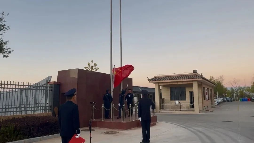 上午8点00分,升国旗仪式正式开始。“迎国旗、奏国歌、向国旗敬礼!”伴随着指挥员清脆洪亮的口令,升旗仪式正式开始。护旗手护卫着国旗,迈着整齐划一的步伐护送国旗到达升旗台。旗手奋力挥臂将国旗展开,鲜艳的五星红旗冉冉升起,在警营上空迎风飘扬。参加仪式的民辅警整齐着装、队列肃立,面向国旗庄严敬礼,展示了牟定公安在新的一年所展现的新气象新作为。