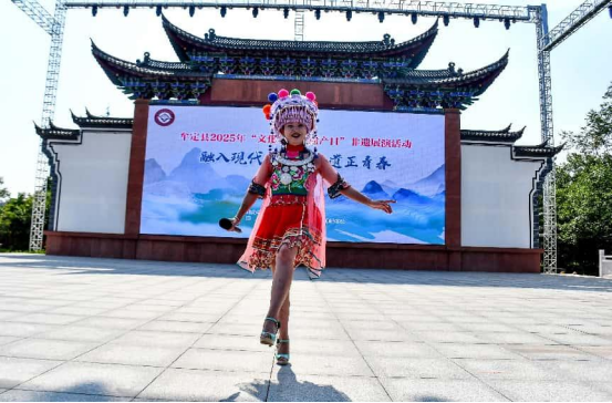 9时30分,非遗歌舞展演准时开演。左脚舞《跳得月亮不想睡》,以欢快的节奏、灵动的舞步瞬间点燃现场气氛;彝族敬酒歌《彝家迎客三杯酒》,用悠扬的歌声传递着彝族人民的热情好客;左脚舞传统套路《狗撵羊》《摆八下》展现了什么是彝族文化的“活化石”;普翠梅的左脚调《左脚舞之乡欢迎你》,更是向四方宾客发出热情邀约。彝族服饰、刺绣展示及相关节目,全方位展示了牟定的独特风采。