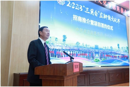 5月16日,中国·牟定2023“三月会”左脚舞文化节招商推介会暨项目集中签约仪式在牟定举行,云南省民营企业家协会副书记、常务副会长、招商引资工作委员会主任、牟定县招商大使赵道顺,楚雄州人民政府副秘书长包雁鸿,楚雄州投资促进局党组成员、副局长彭金富,中共牟定县委书记李明峰,中共牟定县委副书记、县人民政府县长李永军等省、州、县领导出席活动,中广核新能源投资(深圳)有限公司云南分公司、蜂巢智储(常州)科技有限公司、林源控股集团有限公司、北京国艺中联科技集团等91家知名企业家代表参加活动,活动由县人民政府分管副县长邓示锦主持。