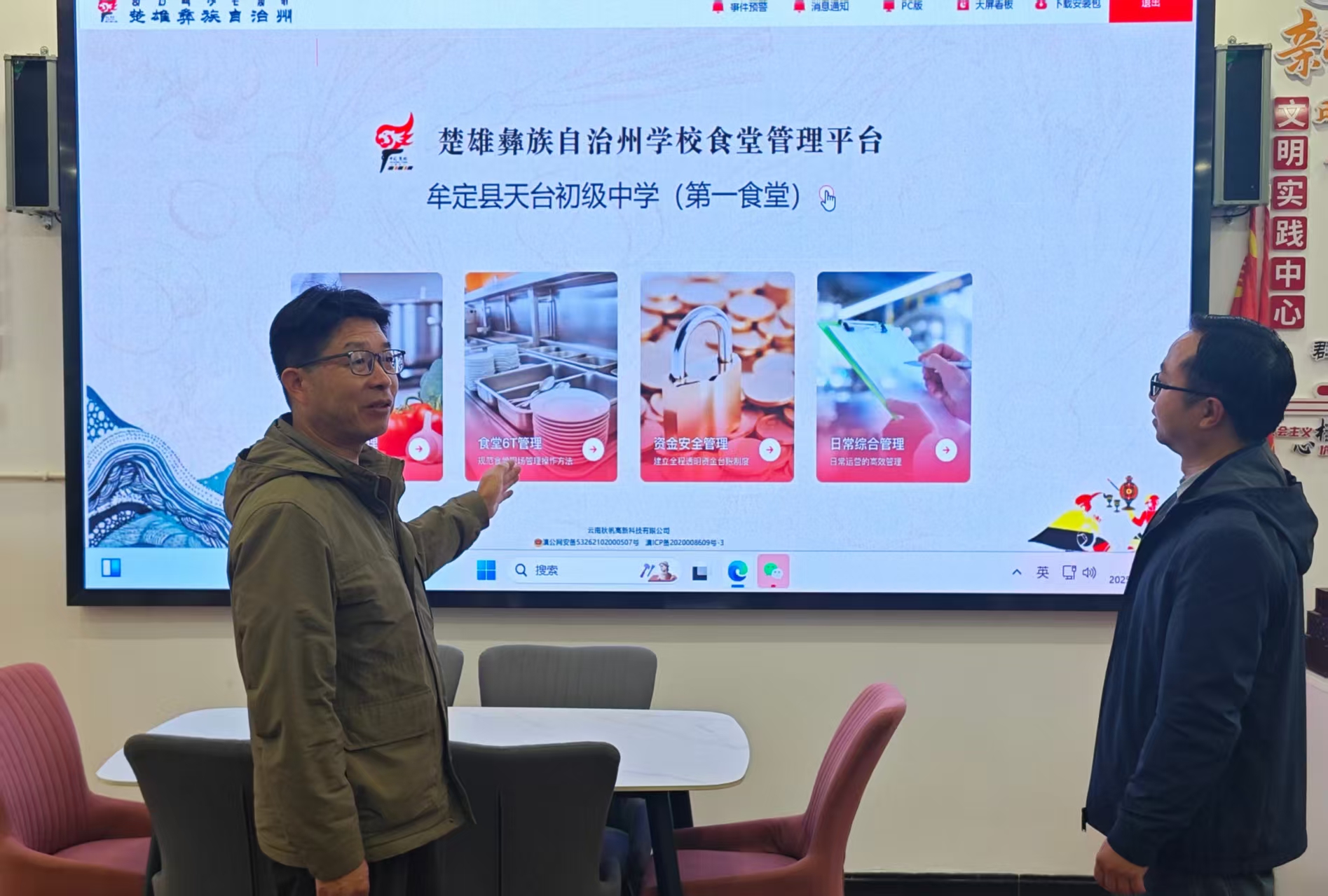 监管体系实现智慧化。通过智慧食堂系统,各学校实现了食品、食材从采购入库到存储、加工、供餐全过程的严格监管。系统对供应商进行规范管理,强化出入库环节监控,并严格执行陪餐管理、食品留样、食材验收检测等制度。智慧食堂系统通过汇总学校食堂各类数据信息、视频监控及异常预警推送等远程展示手段,构建了县、校闭环监管体系,实现了县教育体育局对食堂的远程实时监管,以便及时发现并解决食堂运行中的问题,同时系统提供的大数据也为上级决策提供了科学决策依据,不断提高了牟定县学校食堂管理的规范化、智慧化水平。