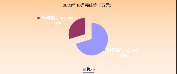 2020年10月税务部门完成一般公共预算收入累计完成24,291万元,比上年同期29,734万元减收5,443万元,下降18.3%,为人民代表大会通过年初预算数31,947万元的76%。