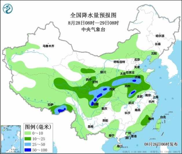 预计未来三天,西北地区东部、华北西部、黄淮等地多降水天气。其中26日,强降雨主要出现在陕西、河南;27日至28日,较强降雨主要在甘肃、宁夏、陕西、山西、四川、河南、山东等地。未来三天具体预报如下: