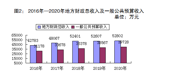 全县完成地方财政总收入5.28亿元,比上年增长0.4%;一般公共预算收入3.97亿元,比上年增长3%;地方财政总支出20.98亿元,比上年增长9.9%;一般公共预算支出18.73亿元,比上年增长5%;一般公共服务支出2.41元,增长8.1%。