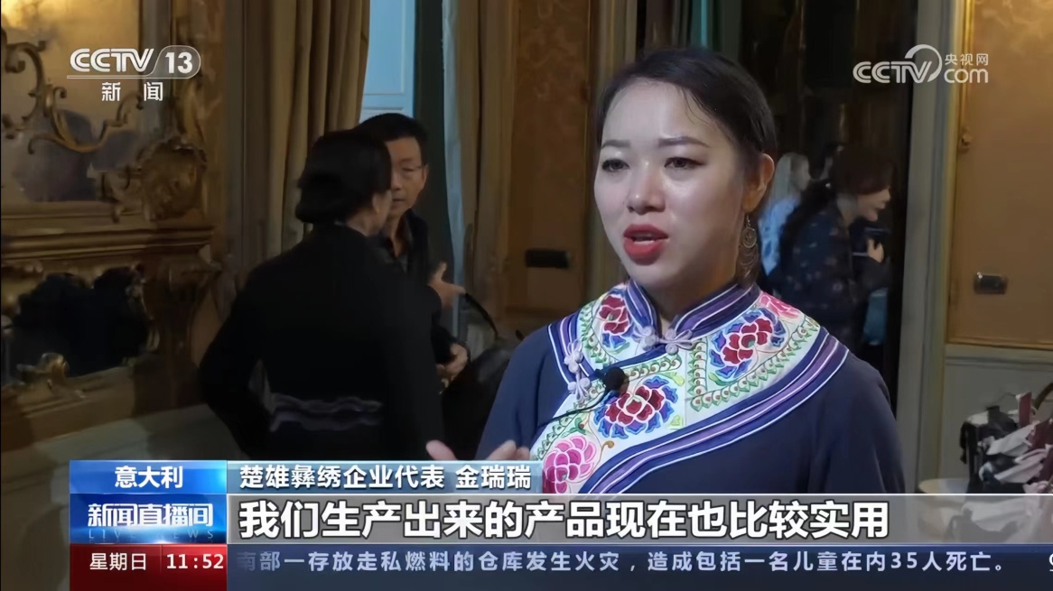 CCTV—13播放金瑞瑞在意大利国际米兰时装周彝族服装展的实况