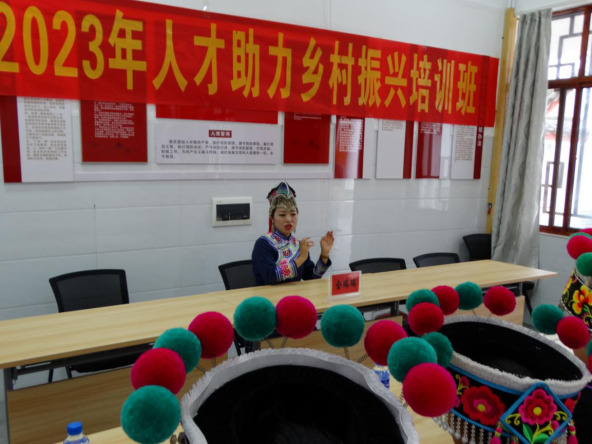 全国人大代表、牟定县杰鲁彝绣文化有限公司总经理金瑞瑞,做现代彝族刺绣技艺培训