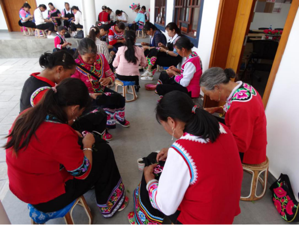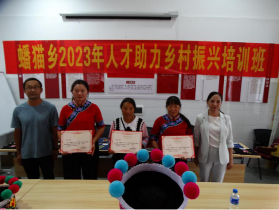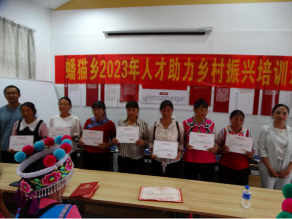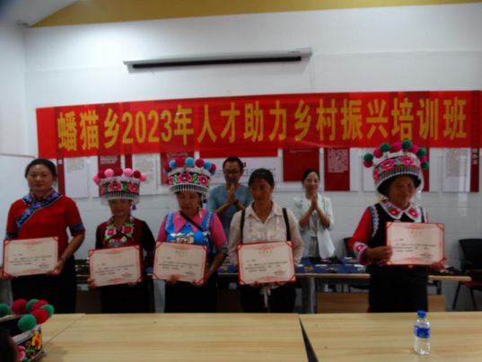 对参加彝族刺绣培训班的绣娘颁发结业证书