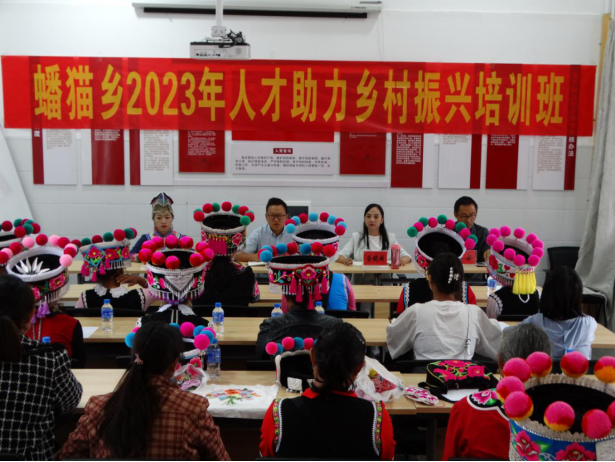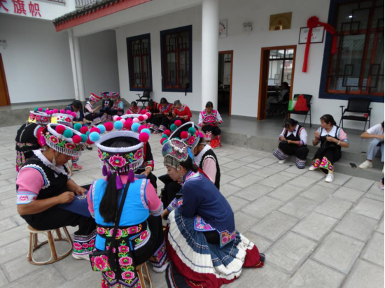 习近平总书记指出,在新的起点上继续推动文化繁荣、建设文化强国、建设中华民族现代文明,是我们在新时代新的文化使命。为进一步推动彝绣特色文化产业高质量发展,蟠猫乡成立了彝绣产业发展专班,成立了非遗传承培训学校、由县委宣传部牵头举行了“彝绣车间”揭牌仪式,建立了彝族刺绣人才师资库,推荐彝绣人才到州、省、国家级的彝绣文化培训机构进行培训,推荐更多的州级省级彝族刺绣传承人。通过一系列有效的措施,让蟠猫乡的彝绣走向全国,走向世界。