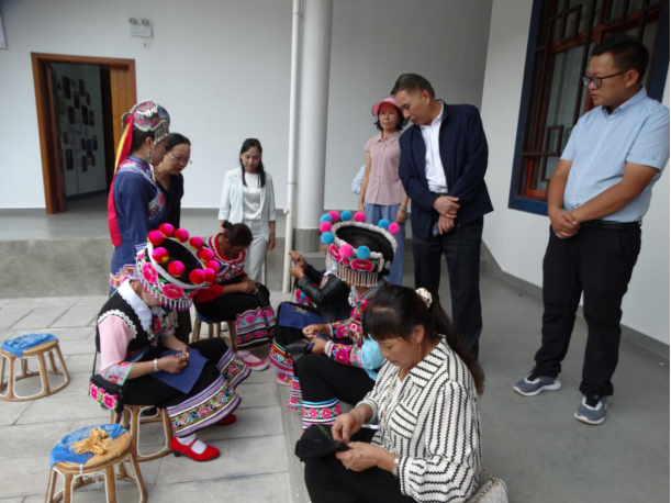 省委宣传部领导到蟠猫乡调研彝绣产业发展并做指导,县委宣传部部长张之成陪同调研
