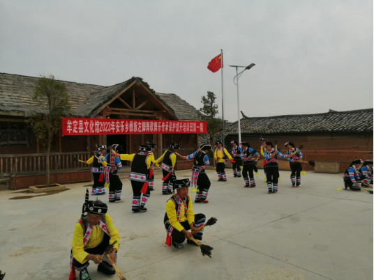 2023年10月16日牟定县文化馆馆长陆慧珠带队一行三人来到牟定县安乐乡力石村委会新村,指导第一期“乌卡”舞提升培训班,培训班为期五天,共有25人参加培训,培训舞蹈主题表达农田高粱丰收,农人喜庆丰收,用高粱酿出美酒,邀请亲朋共赏,通过“乌卡”舞风格独特的表现形式和“木笛”和“树叶”清脆明亮,特色奇异的伴奏,把农人的朴实无华,丰衣足食表现了淋漓尽致,让人身临其境,流连忘返,融入其中跟随古老的“乌卡”舞感受来自舞者发自内心的欢悦、喜庆、丰收的满足。