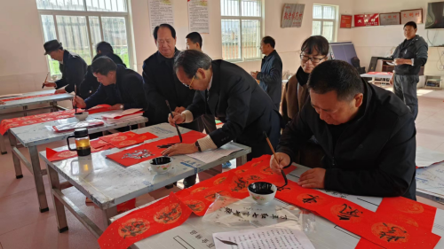 县老年书画协会到共和镇牟尼村委会肖刘村为群众义务书写春联。