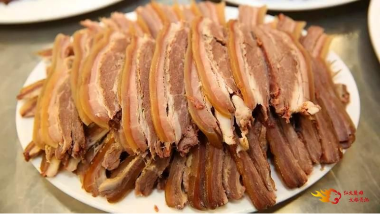 人说“天上龙肉、地上驴肉”,牟定的驴肉以“超群驴肉”为代表,有火锅、卤凉、油炸、火烧、酱肉、腌驴肉干巴等多个品种。最出名的驴肉汤锅,用炭火煮肉加20多种原料慢熬成鲜香浓醇的“高汤”,再把挑选出来的新鲜腿骨肉、软肋条用大火快煮,调汁后放入汤筒小火慢炖制成汤汁浓厚、色泽金黄的卤肉,香味浓郁、口感独特。