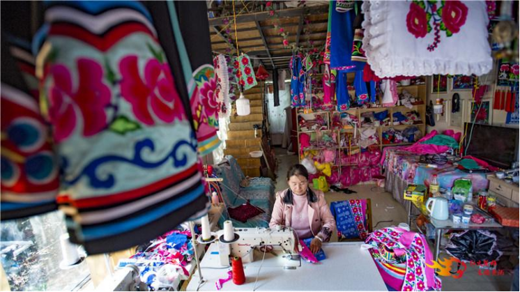 牟定彝族刺绣手工艺传承千年,彝绣品种过百,以花衣、套裙、马褂、包头、围腰、花裹背、枕套、绣花鞋等为代表的绣品做工精细、构图精美、色彩艳丽,透着浓重的民族风情。