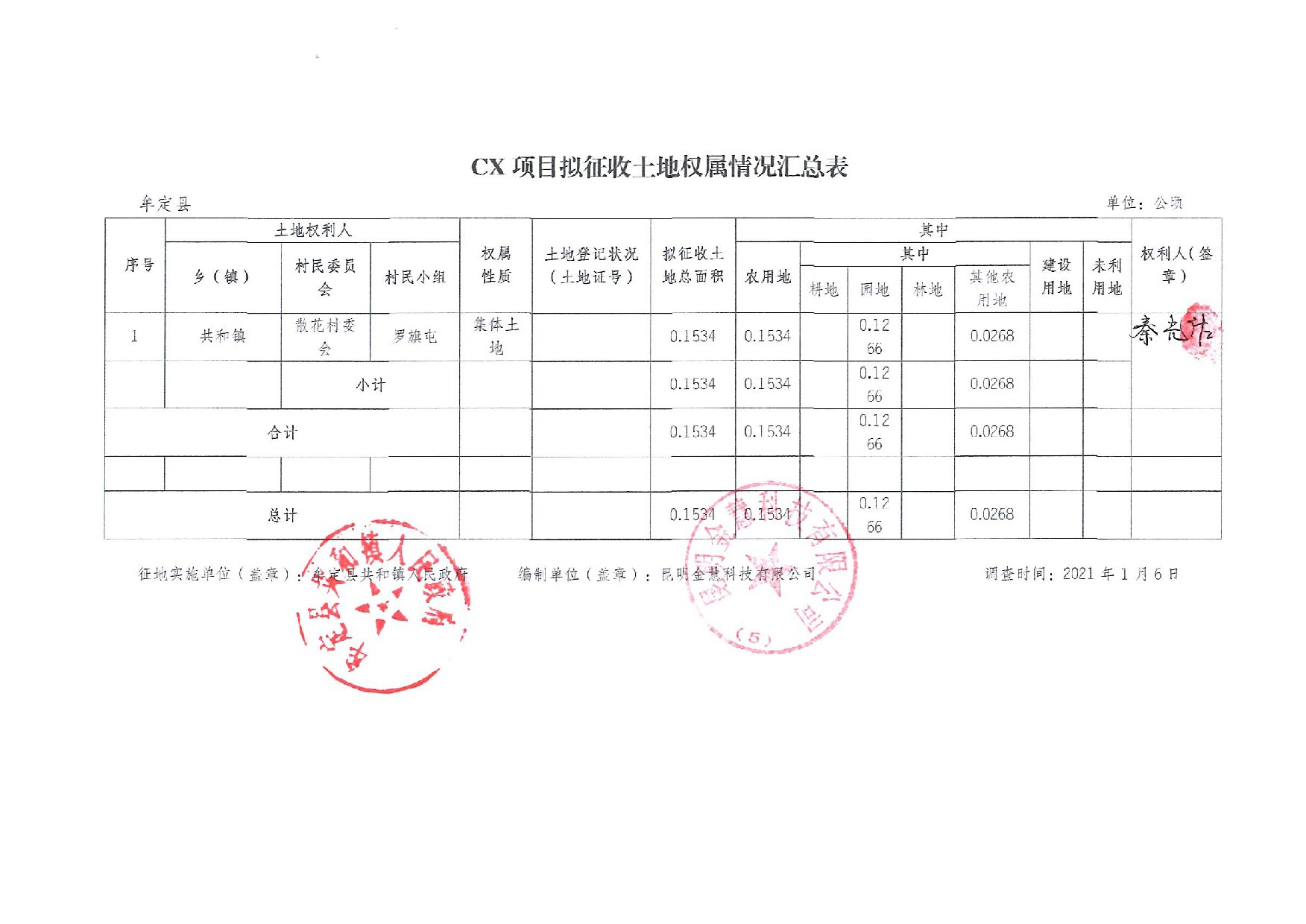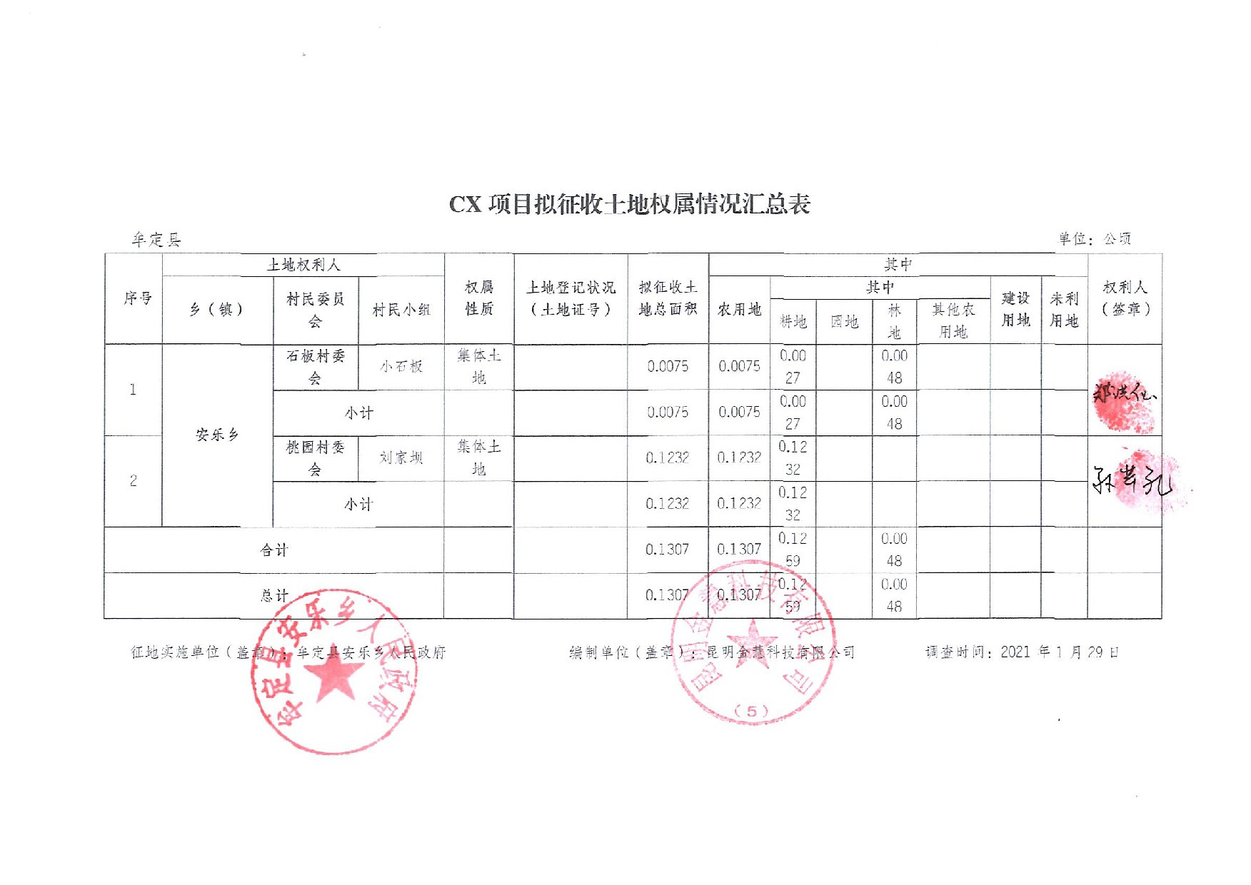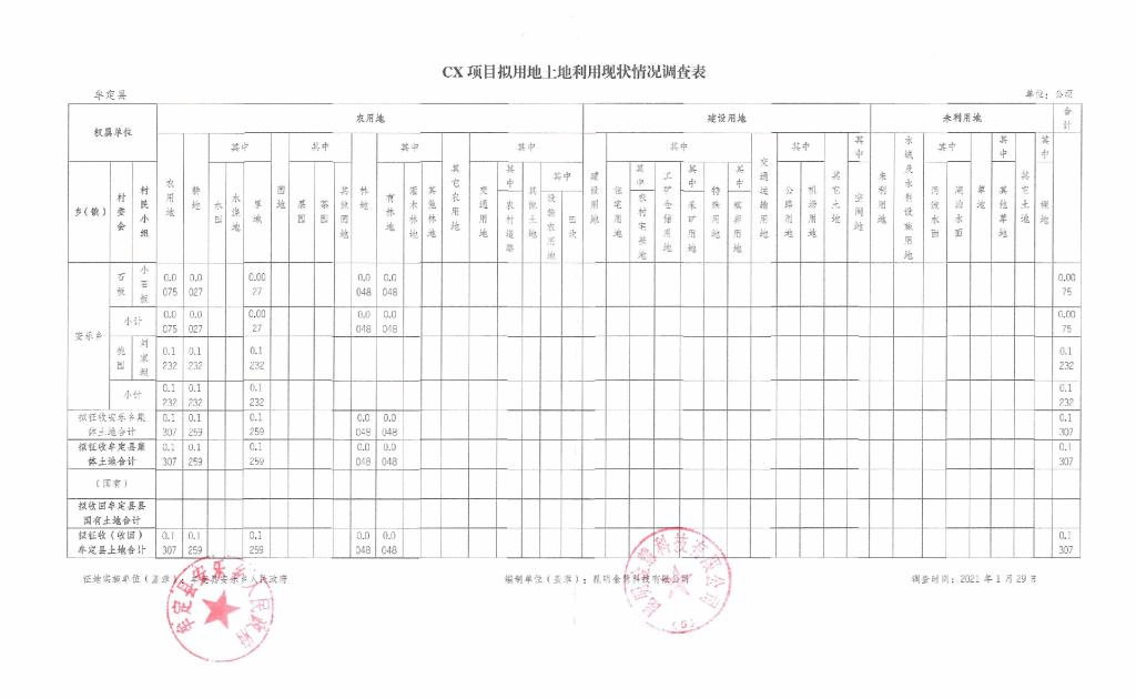 本项目拟征收土地权属、地类、面积详见《CX项目拟征收土地现状调查报告》。