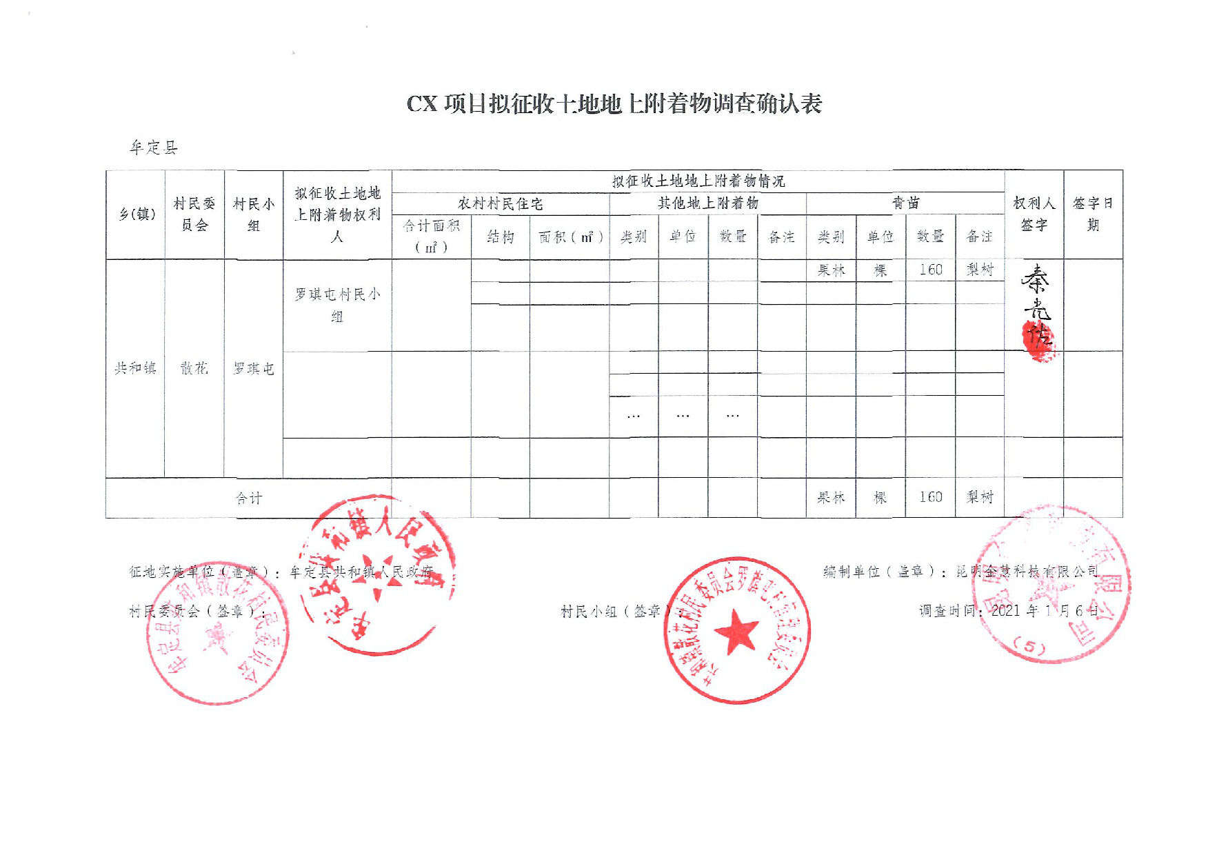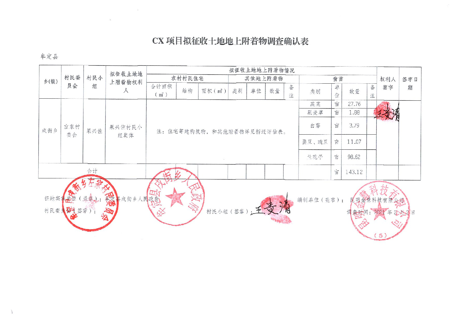 本项目拟征其他地上附着物和青苗等的权属、种类、数量等信息详见《CX项目拟征收土地现状调查报告》。