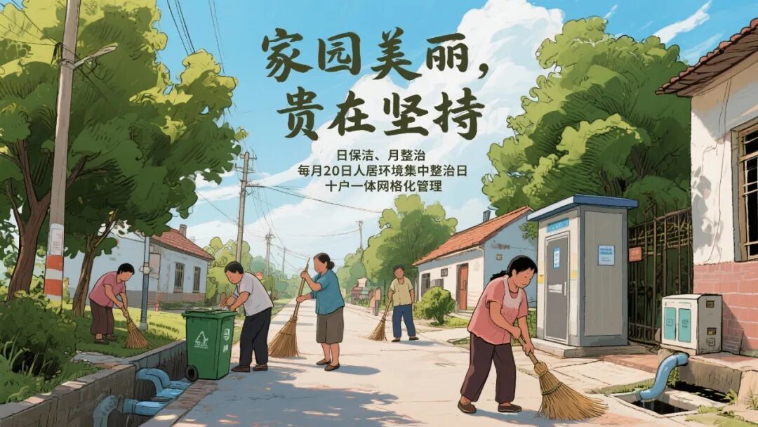 家园美丽,贵在坚持。我们要自觉遵守“日保洁、月整治”制度,积极参与每月20日的人居环境集中整治日活动;支持“十户一体”网格化管理,配合网格长、网格员开展动态巡查,主动监督新增环境问题;爱护智能垃圾箱、污水管网、公厕等公共设施,发现破损及时向村委会上报,杜绝人为损坏;要养成健康文明的生活习惯,让干净整洁成为常态。