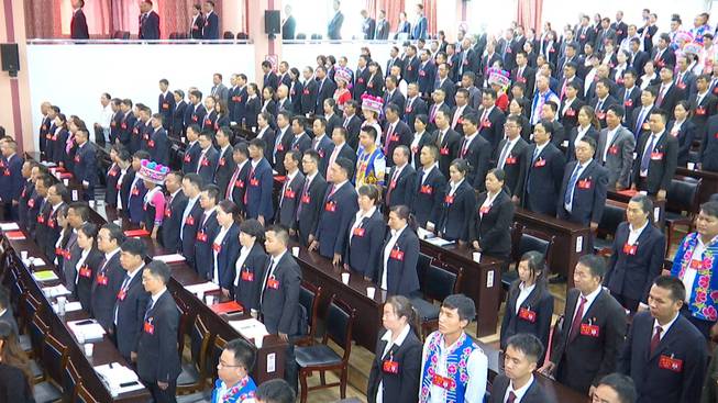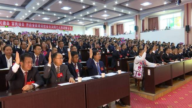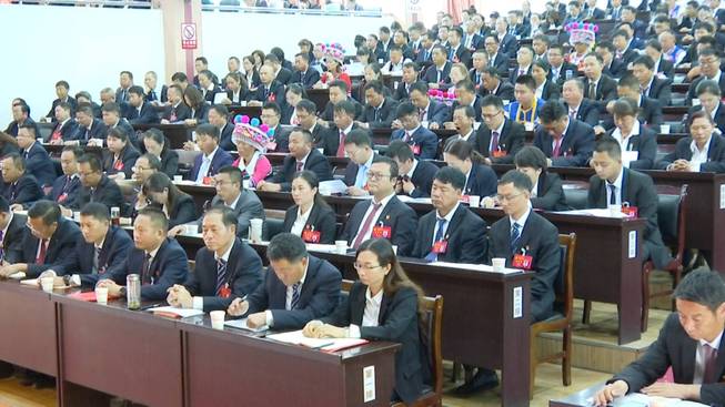 在圆满完成各项议程和任务后,中国共产党牟定县第十四次代表大会在雄壮的国际歌歌声中胜利闭幕。(县融媒体中心)