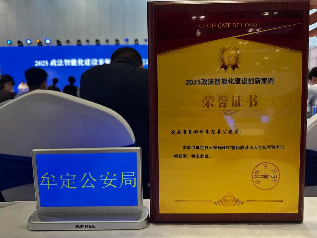 2025年7月,牟定县公安局NFC警民联系卡项目在全国竞争中脱颖而出,入选“2025政法智能化建设智慧警务创新案例”,并于7月23日在北京国家会议中心领奖。这一荣誉不仅是对牟定县公安局在智慧警务建设方面积极探索和创新实践的高度认可,也标志着牟定公安在科技赋能警务工作上迈出了坚实有力的一步。