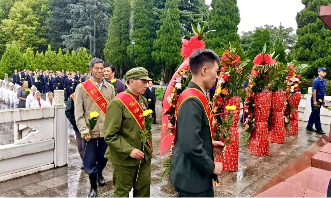 细雨濛濛中,苍松翠柏掩映的革命烈士纪念碑巍峨耸立,气氛庄严肃穆。全体人员在纪念碑前整齐肃立,共同奏唱中华人民共和国国歌。国歌唱毕,全体人员向人民英雄默哀,纪念为实现民族独立和人民解放、国家富强和人民幸福而英勇牺牲的革命烈士。默哀结束,手持鲜花的少先队员齐声献唱《我们是共产主义接班人》,表达对革命先烈的崇敬之情。伴随着深沉凝重的《献花曲》,礼兵们抬起花篮,缓缓走向革命烈士纪念碑,将花篮整齐摆放在纪念碑前。李明峰、李永军、张家海、刘云、林俊锋缓步上前,仔细整理花篮上的红色缎带,向革命烈士致以深切哀思和崇高敬意。随后,参加仪式全体人员拾阶而上,依次献上手中鲜花并缓步绕行,深情瞻仰革命烈士纪念碑,深切缅怀革命先烈的丰功伟绩。