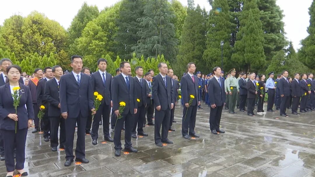 县委副书记、县长李永军主持仪式。在家的县处级领导干部,州管职级干部,县委各部委,县级国家机关各委办局,县级各人民团体、企事业单位主要负责人和社会各界代表参加敬献花篮仪式。