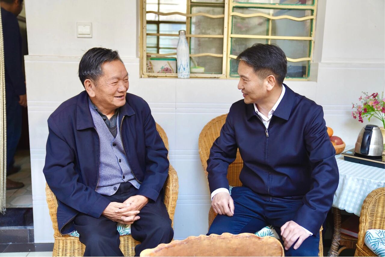 左刚先后来到退休老干部李自德、普学煌、毕继贤、曹庆智、洪显光家中与他们促膝长谈、畅叙家常,关切询问每一位老干部的身体状况、家庭生活等情况,认真听取老干部对牟定经济社会发展各项工作的意见和建议。