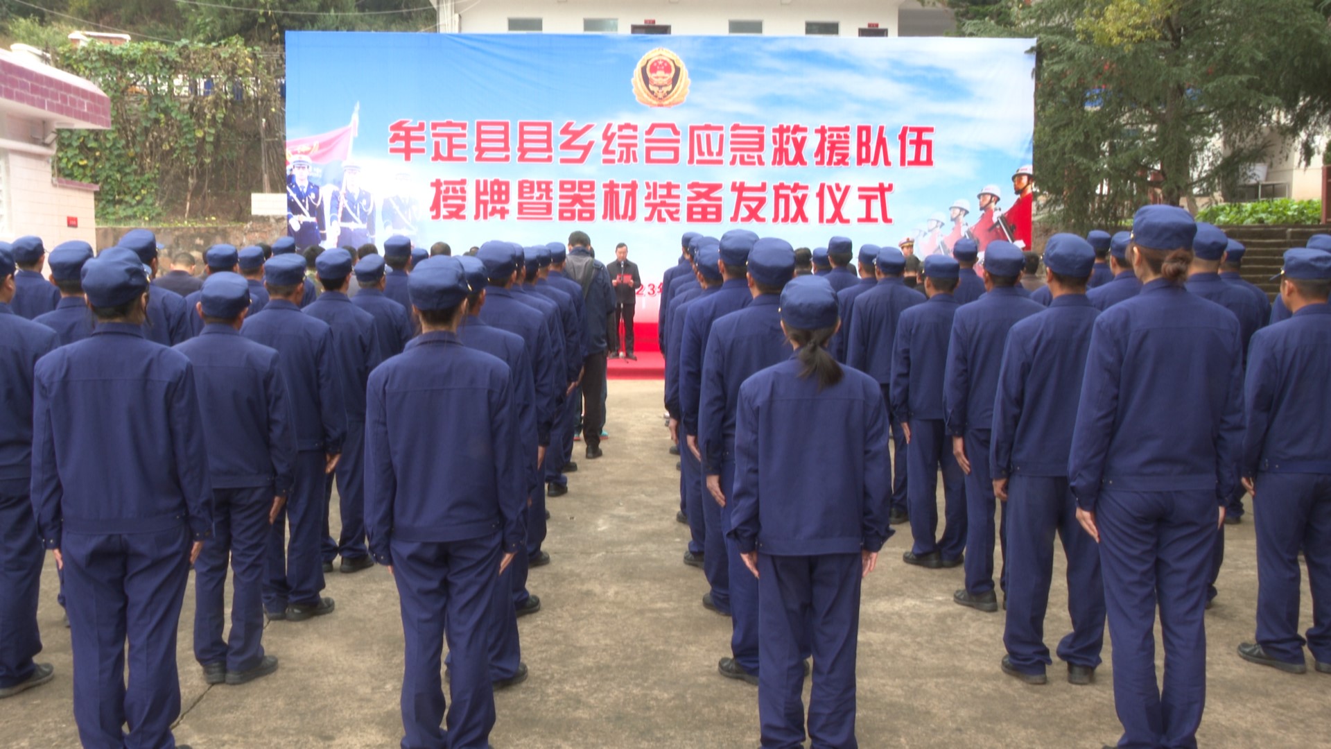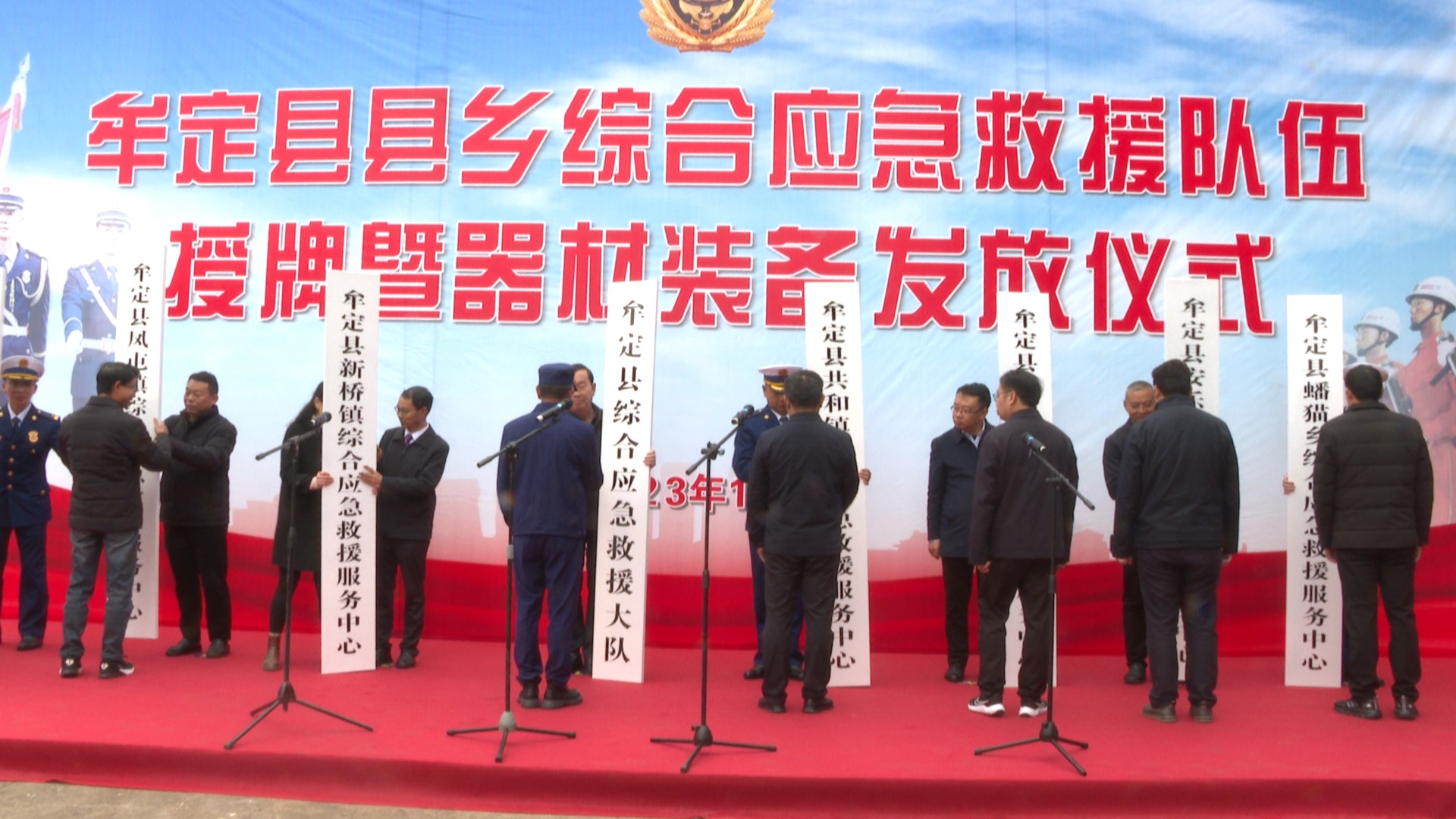 11月20日,牟定县举行县乡综合应急救援队伍授牌暨器材装备发放式。