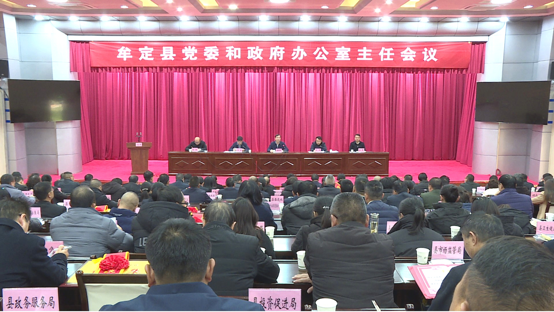 县委常委、常务副县长王炜宣读《中共牟定县委牟定县人民政府关于表扬牟定县办公室工作优秀集体和优秀个人的通报》,县委常委、县委办公室主任田波主持会议。会议还为县人大常委会办公室等优秀集体代表颁发荣誉牌匾,为姚克诚等优秀个人代表颁发荣誉证书。(牟定县融媒体中心 李 钰)
