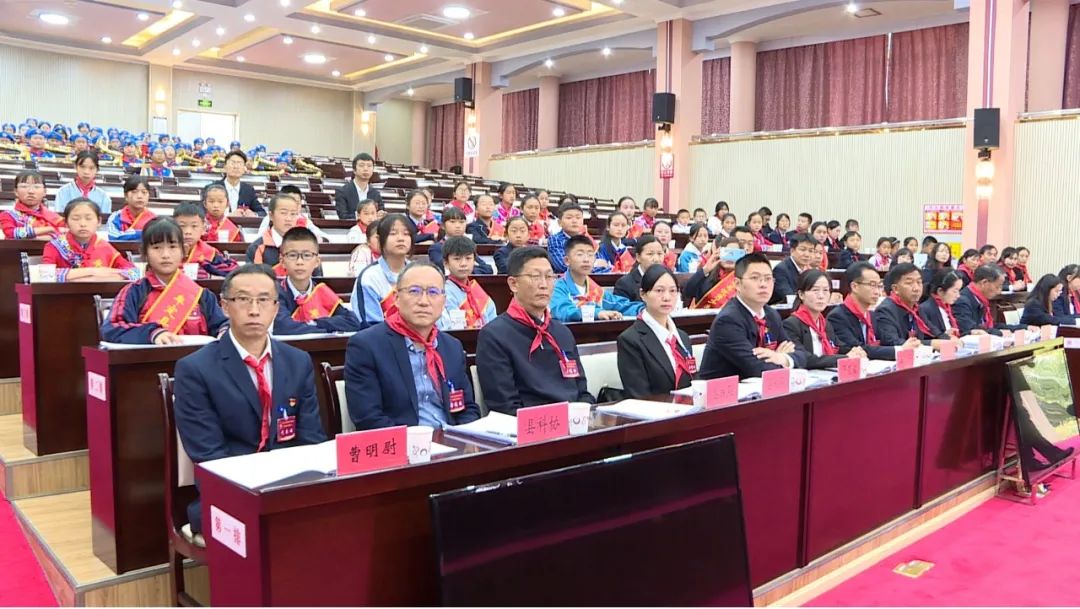 大会在庄严的国歌声中拉开序幕。全体人员齐唱国歌、队歌,旗手高举旗帜,阔步前行,6名少先队员代表向大会献词,表达了对党和祖国的热爱。