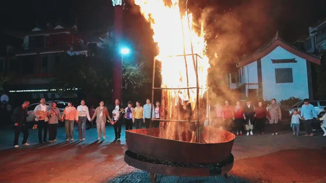 演出结束后,舞台旁的广场空地上熊熊燃烧的篝火更是将现场氛围推向高潮,大家手牵手、肩并肩,围着篝火共同欢跳左脚舞,整个广场都沐浴在歌舞声中。