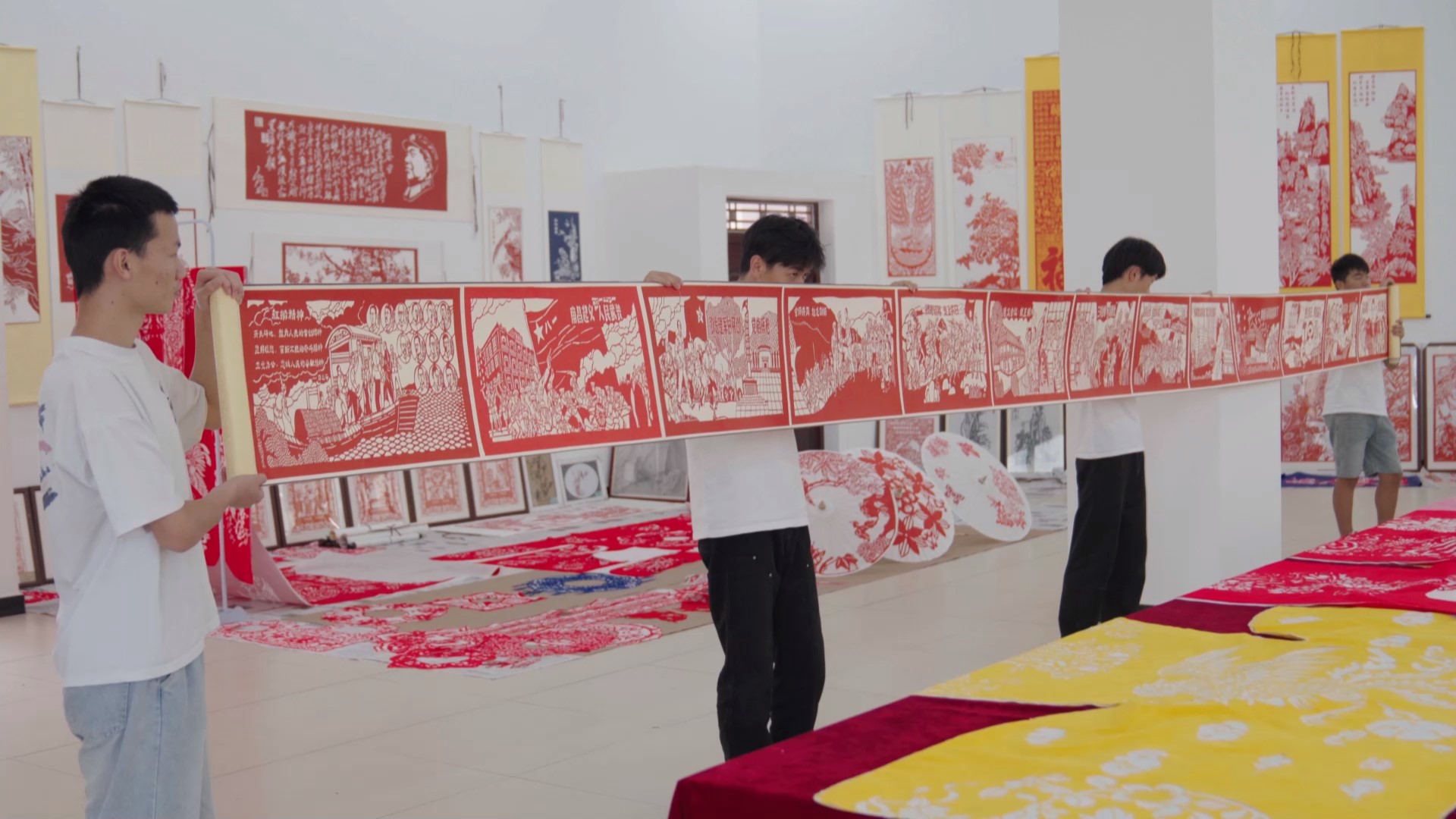 从今年3月份开始,县职业高级中学非遗兴趣班教师邓光雷就着手构思设计,他带领学生利用课余时间,深入了解历史,认真琢磨,将历史人物、事件一一画到纸上,在剪刻过程中精益求精反复修改,用了近三个月的时间完成了这幅剪纸作品。参与作品创作的学生王宝银说,在这幅作品的雕刻过程中,遇到了很多困难,比如在雕刻细小的线条时,一不小心线条就会雕断,需要反复地重雕,一幅画有可能需要雕三四遍才能完成。