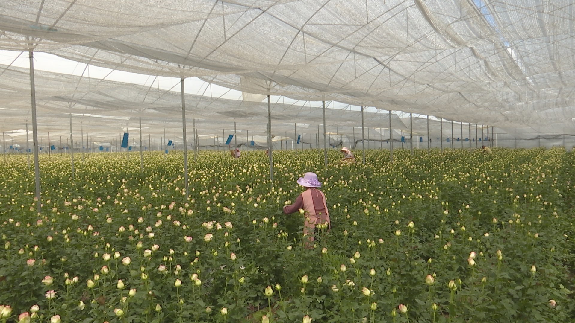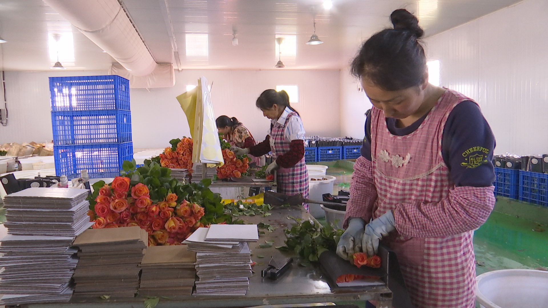 在共和镇牟尼村委会花卉种植基地里,花农秦正聪种植的35亩玫瑰迎来了采摘销售高峰期,天刚亮,秦正聪就和家人在大棚里忙碌起来,到下午5点左右,秦正聪一家当天就完成500多把、10000多支红玫瑰的前期采摘和后期的分拣、包装等工作,准备将一筐筐玫瑰发往昆明斗南花卉市场。