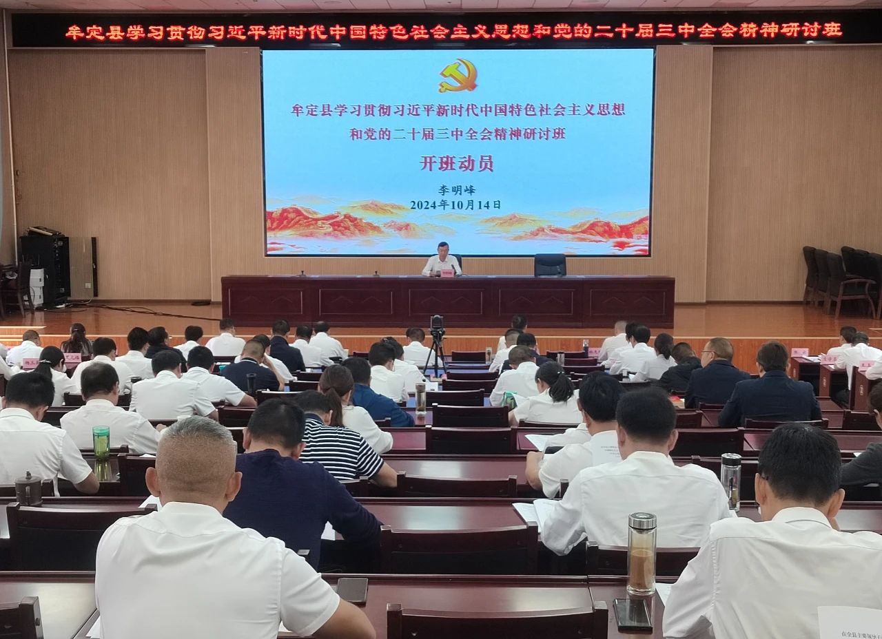 10月14日,牟定县学习贯彻习近平新时代中国特色社会主义思想和党的二十届三中全会精神研讨班开班。县委书记李明峰作开班动员暨主题报告,县委副书记、县长李永军主持开班式。