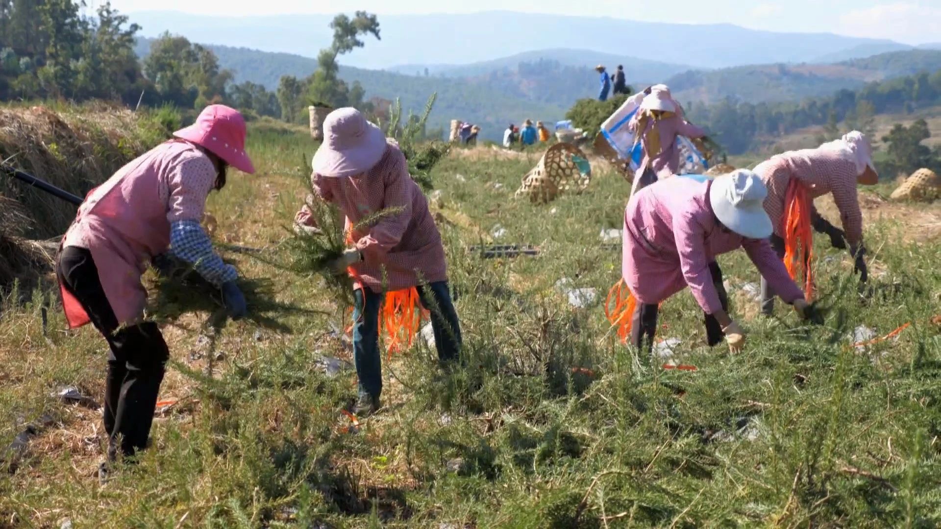 企业入驻村间发展产业,平均每天吸纳周边村庄70余名群众到基地务工,每年支付工人工资200多万元。群众还可以通过土地流转获得租金收入,在家门口实现就地就近就业,促进家庭增收。迷迭香种植基地管理人员李育先说:“工资都是正常发着的,因为月头到月尾都发得清楚,也不拖欠。”