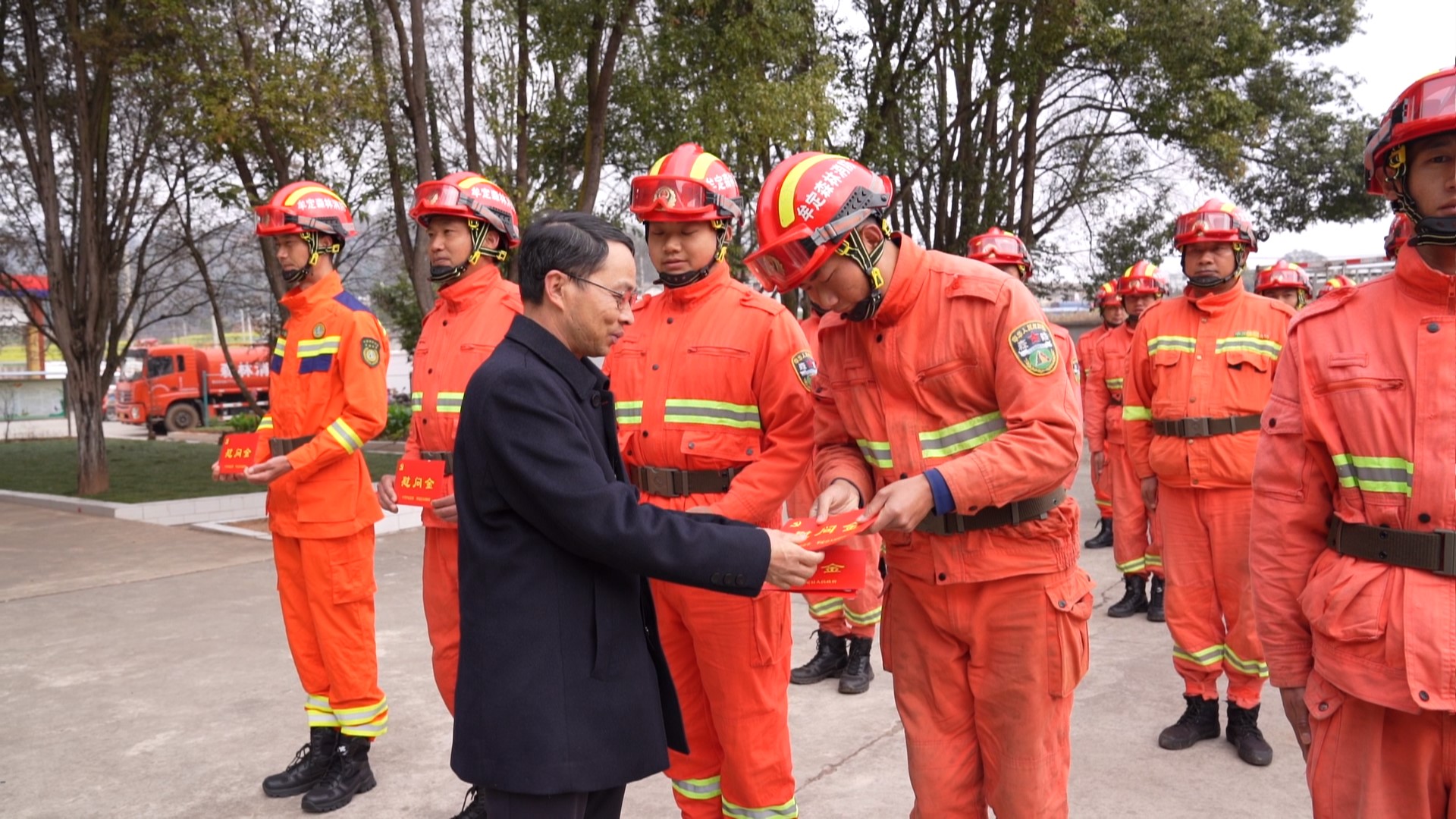 在新桥镇马厂村委会,李永军为应急救援队员送上慰问金,希望他们扎实掌握应急救援知识和技能,做好春节期间应急值守和救援工作,确保人民群众的生命和财产安全。
